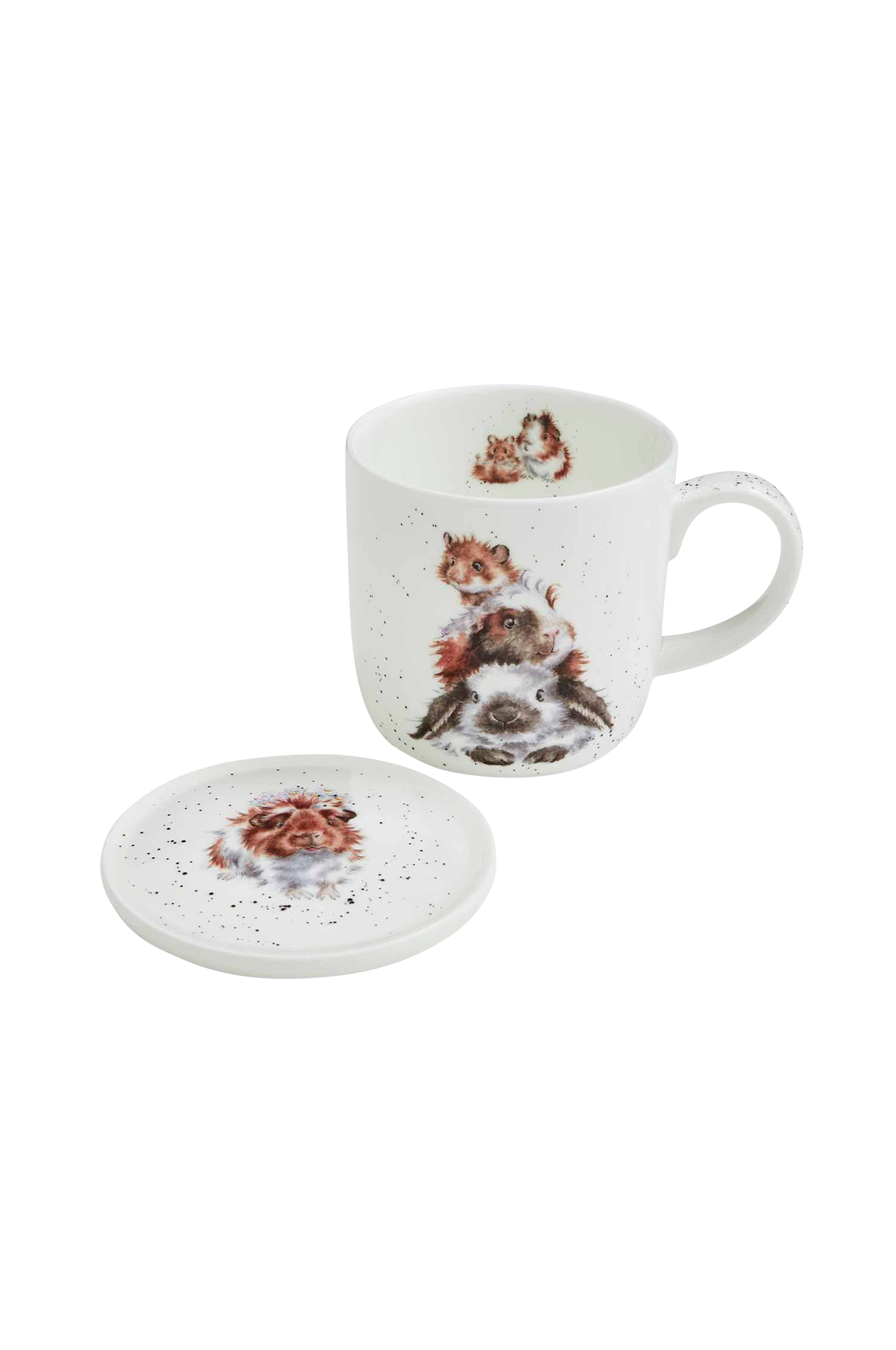 Mugg och underlägg.Set i fin benporslin av hög kvalitet med Wrendale-design. Muggen har ett motiv på framsidan, ett annat på baksidan och ett tredje motiv på den inre kanten. Alla med en fantastisk känsla för detaljer. Muggen rymmer 31 cl. Underläggets diameter 9,5 cm.