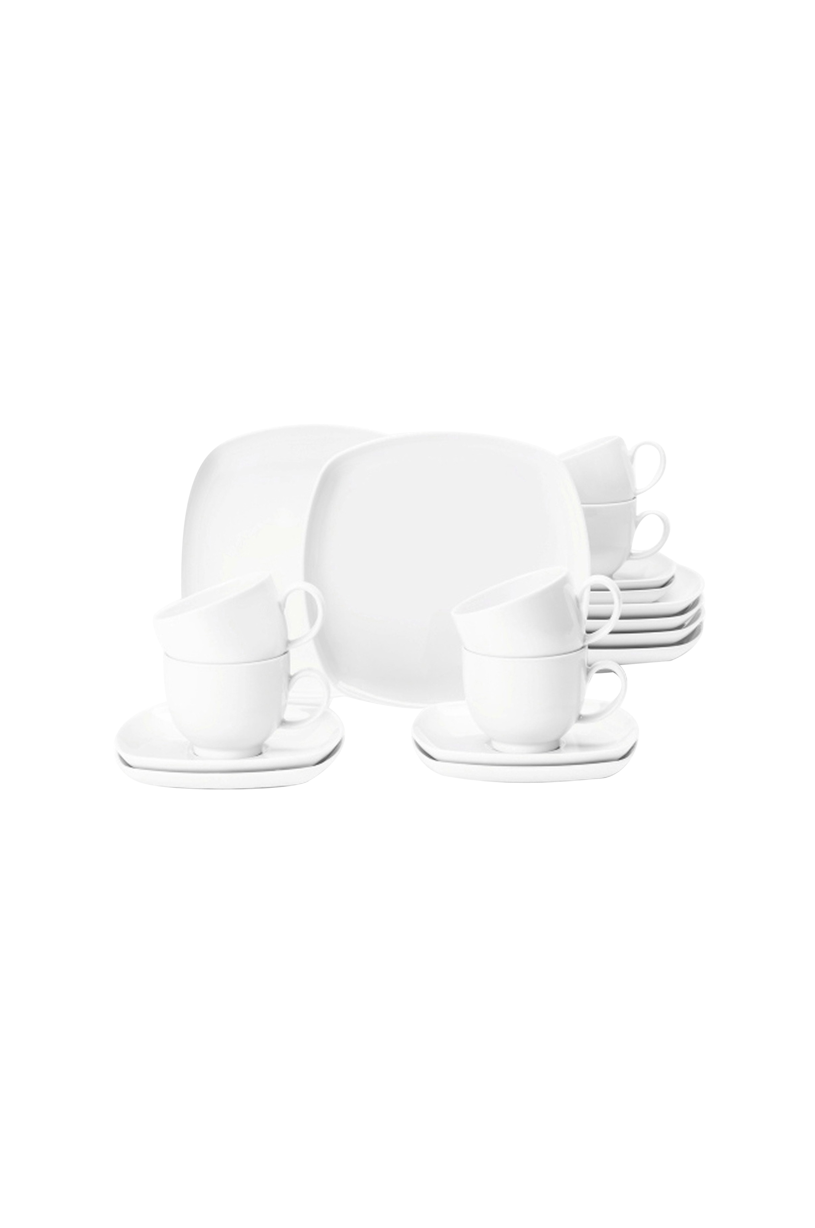 Lido från seltmann weiden, populär serie, passar både till vardag och fest, 100% made in germany, miljövänlig produktion, inga främmande kemikalier, fri från bly och kadmium, teservis 18 delar, vitt porslin 6 tekoppar 0,20 liter, 6 fyrkantiga fat 14,5 cm, 6 fyrkantiga frukosttallrikar 20 cm