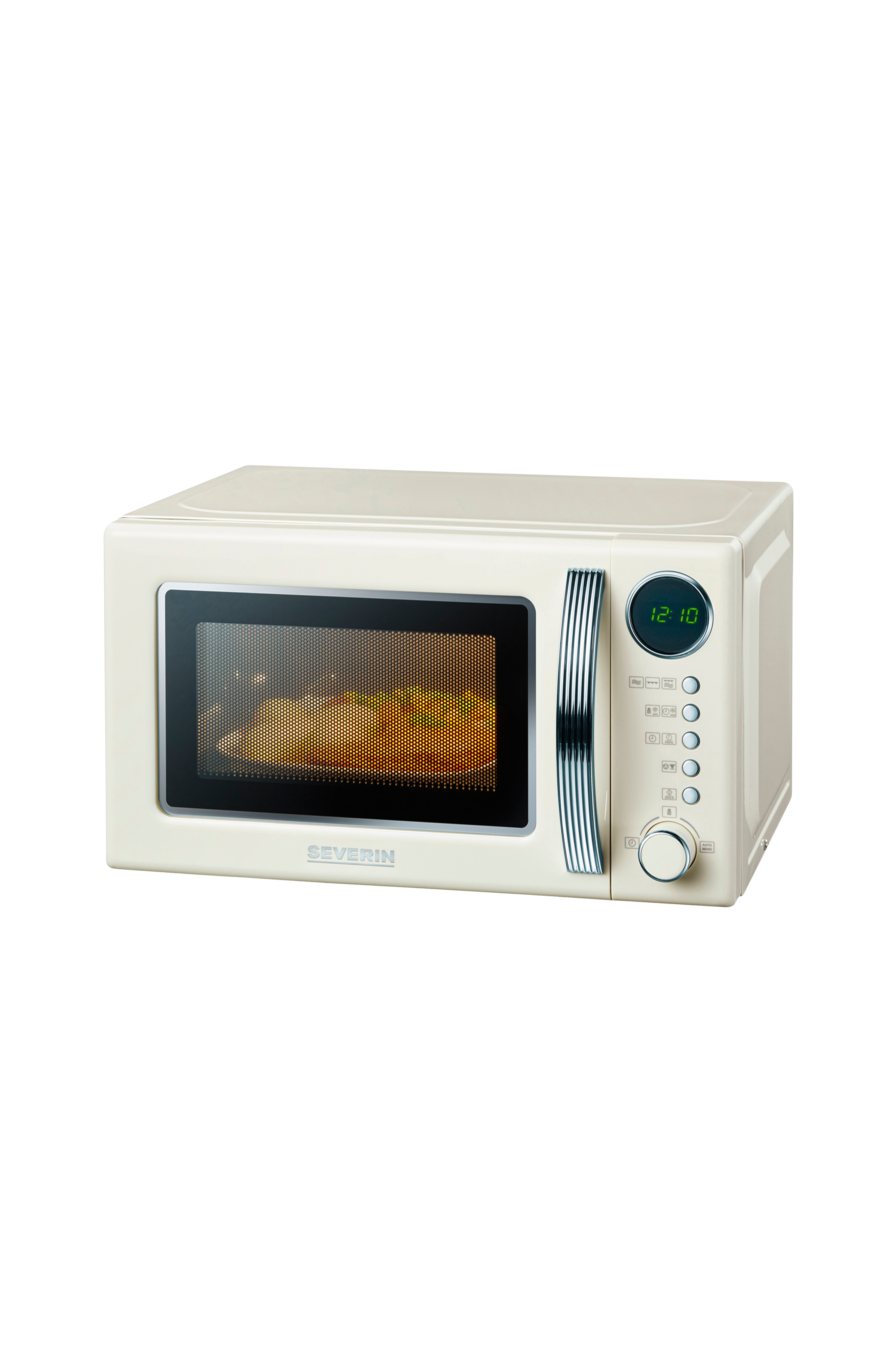 En riktigt snygg mikro i klassisk elfenbensvit färg, från tyska Severin. Produkten ingår i Severins jubileumsserie som lanserats i samband med att de firar 125 år som företag. Som en extra bonus ger de därför en speciellt lång garantitid på hela 5 år! Mikron har 8 förinställda program och en effekt på 700w. Dessutom har den en grillfunktion på 900w som är perfekt att använda när du vill ha en särskilt fin och lite krispig yta på maten. Mikron har 5 olika inställningar, inklusive upptiningsfunktion. Kapacitet på 20 liter. Den roterande tallriken mäter 25,4 cm i diameter. Tydlig och lättmanövrerad LCD-display.
