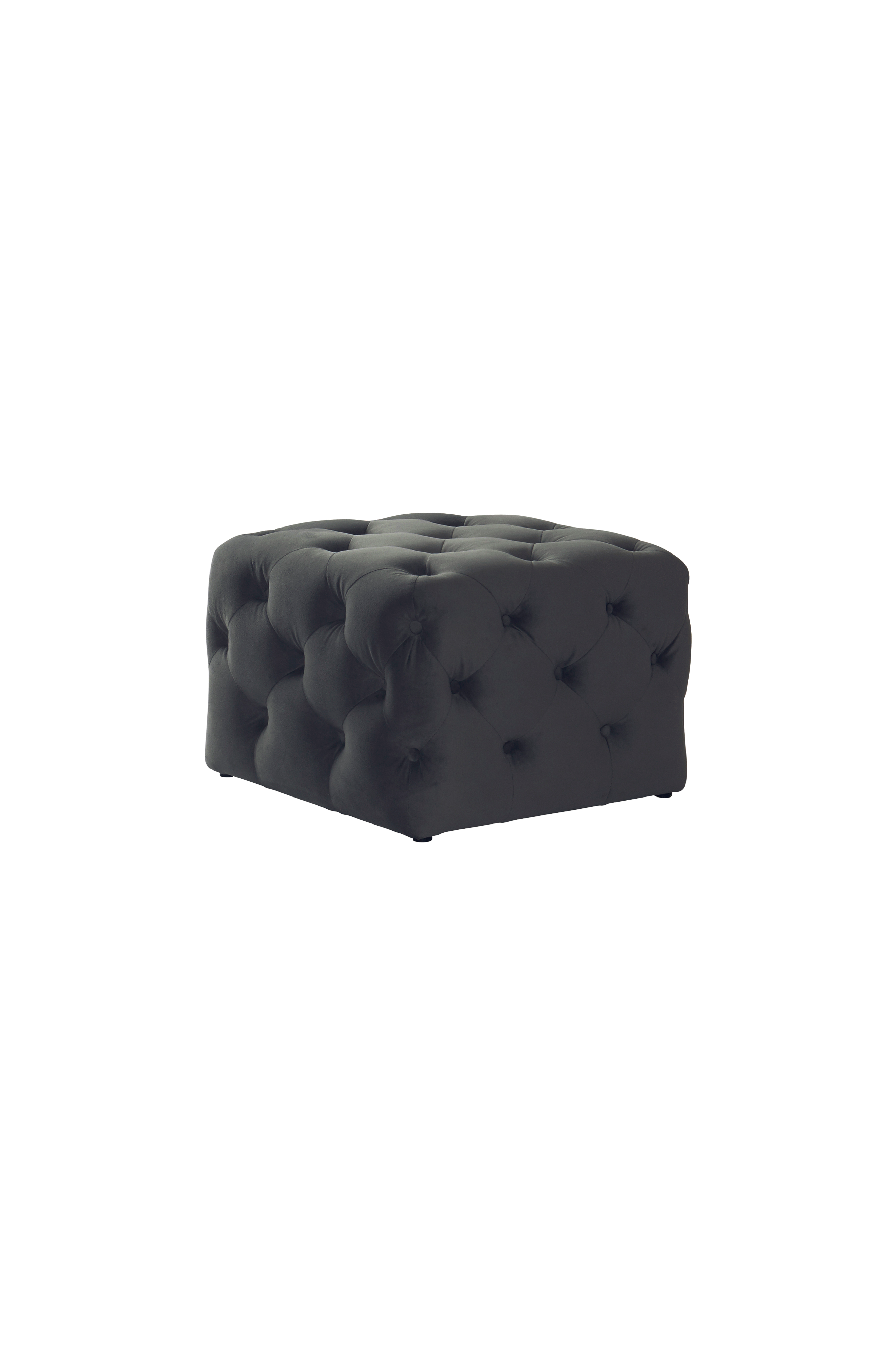 Fyrkantig sittpuff i sammet med djuphäftade och klädda knappar. Kombinationen zickzackfjädrar, resårkärna och skumgummifyllningen maximerar sittkomforten. En sittpuff kan vara en värdefull sittplats om gästerna blir många. Puffen är gjord i patchwork-teknik och sammet är ett tyg med kort lugg så de ser alltid lite olika ut beroende på hur ljuset faller. Det ger puffen en levande look. Tygets slitstyrka är på 28000 Martindale.