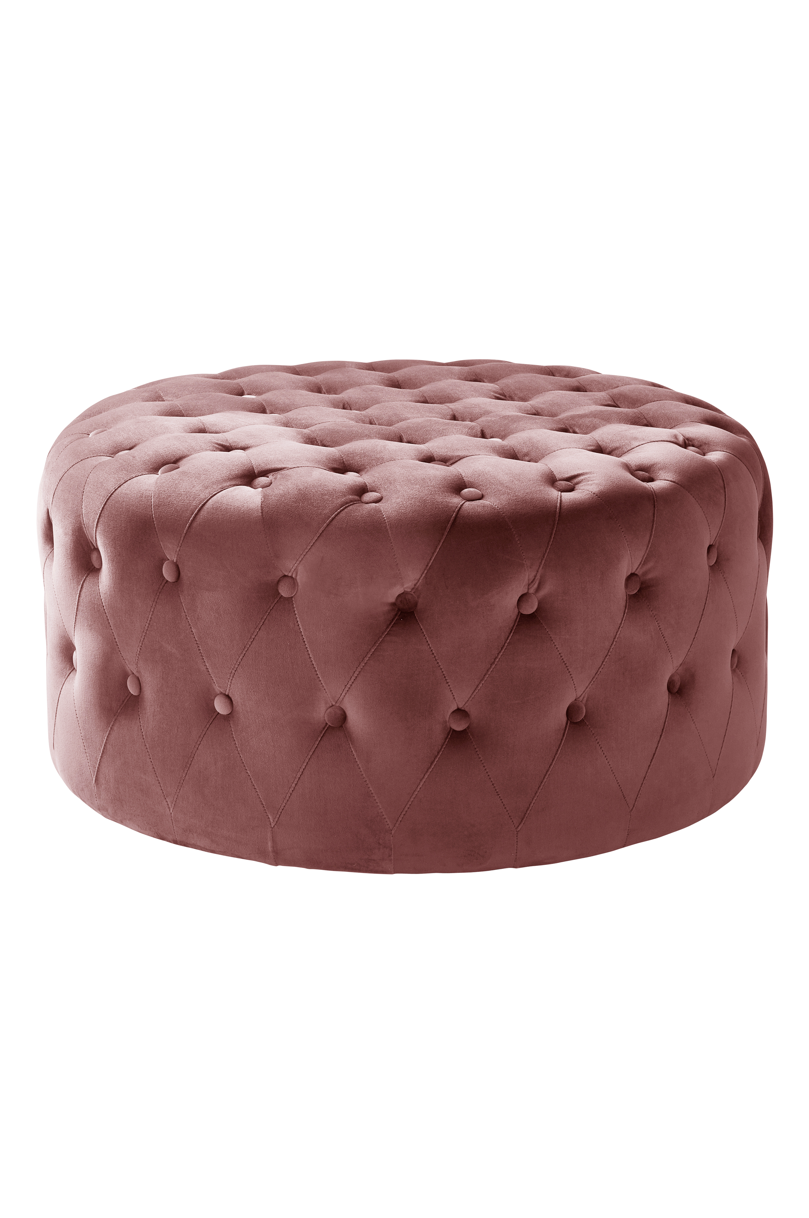 Sittpuff med djuphäftade och klädda knappar. Kombinationen zickzackfjädrar, resårkärna och skumgummifyllningen maximerar sittkomforten. En sittpuff kan vara en värdefull sittplats om gästerna blir många. Puffen är gjord i patchwork-teknik och sammet är ett tyg med kort lugg så de ser alltid lite olika ut beroende på hur ljuset faller. Det ger puffen en levande look. Tygets slitstyrka är på 28000 Martindale.