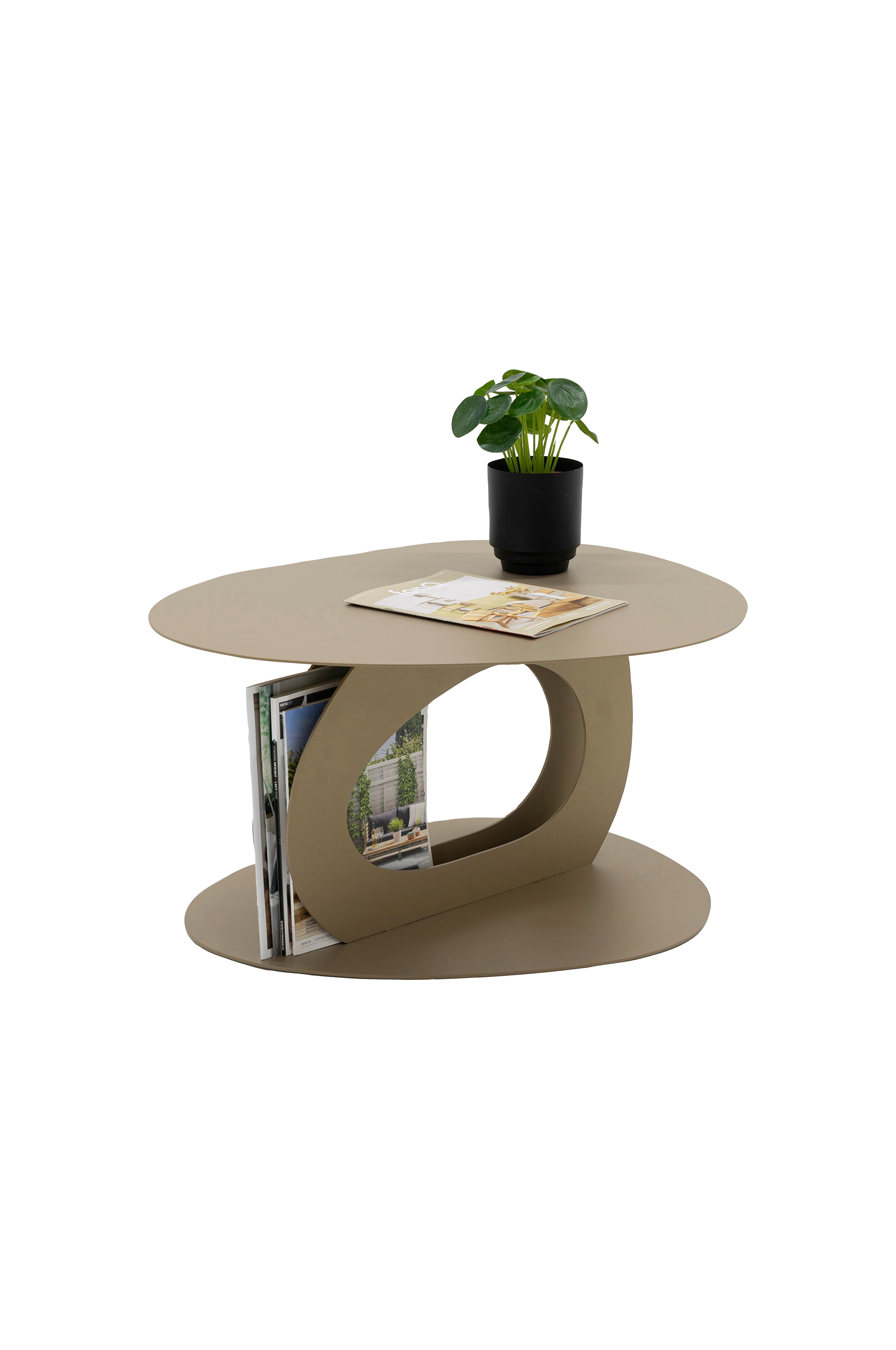 Soffbordet Tonda från kollektionen spinder x Eva Van De Ven är en exklusiv design av Eva Van De Ven, känd från den holländska tv-serien Vtwonen. Tonda soffbord är ett organiskt soffbord tillverkat av återvunnet stål av hög kvalitet. De organiska formerna och den champagnefärgade färgen gör att bordet ser mjukt och elegant ut i alla inredningar. Benet i mitten har ett avstånd på 6 cm, vilket ger soffbordet en extra funktion. Du kan alltså förvara dina vackraste tidskrifter och coffee table-böcker i det här eleganta soffbordet.tonda ingår i stones-kollektionen från spinder x eva van de ven och kan därför kombineras med alto side table.både soffbordet tonda och alto side table föddes ur en önskan om funktionella sidobord och soffbord med organiska former. Resultatet är eleganta och funktionella bord som passar sömlöst in i alla inredningar.tips från Eva: placera en vacker coffee table-bok mellan benen som ett blickfång.