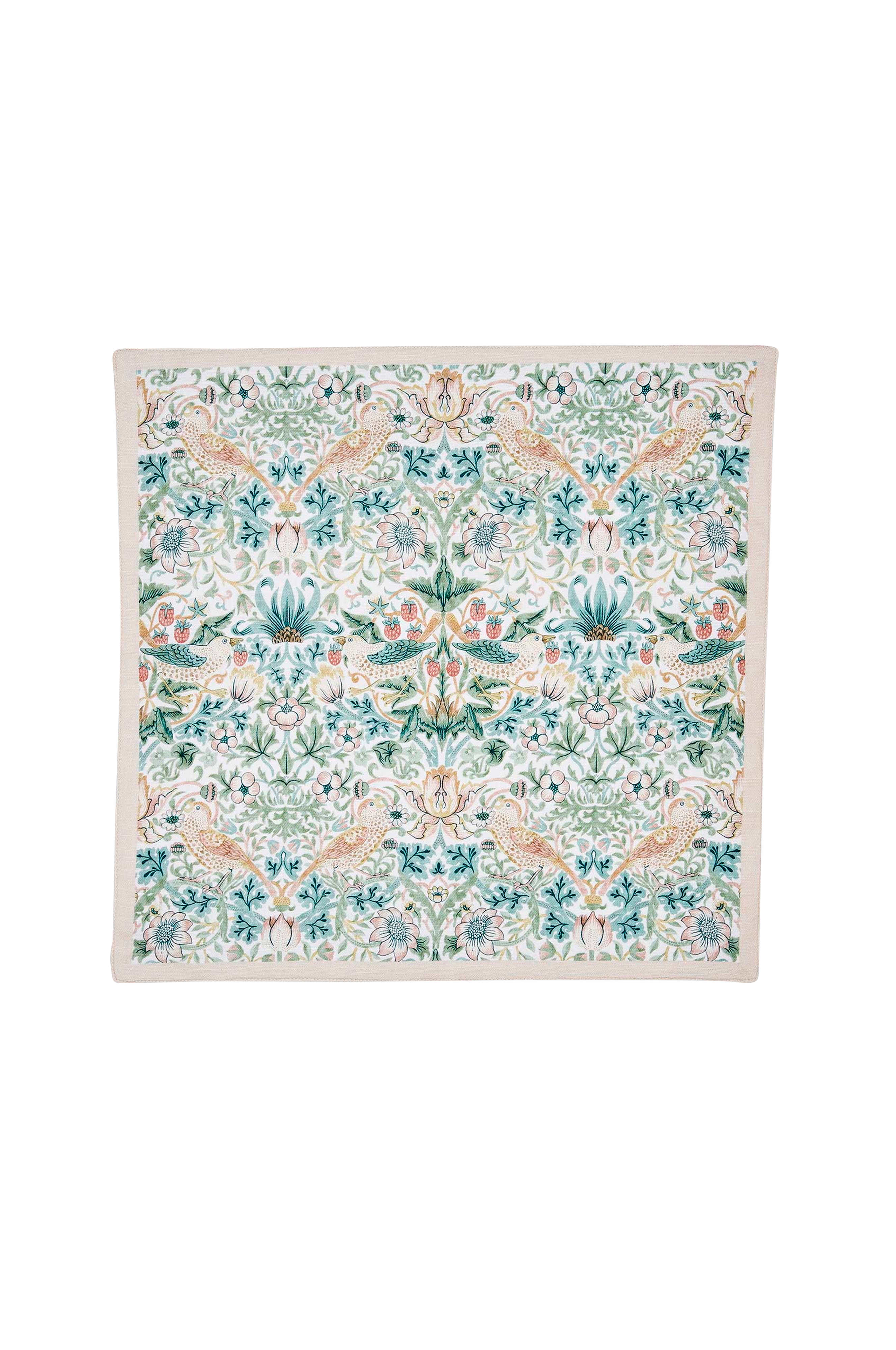 Gör varje måltid speciell med denna uppsättning med 2 servetter från Spodes Morris & Co-kollektion. Av 100 % bomull. Servetterna har det ikoniska Strawberry Thief-mönstret på ena sidan, medan den andra är prydd med en matchande blockfärg. Kan maskintvättas.