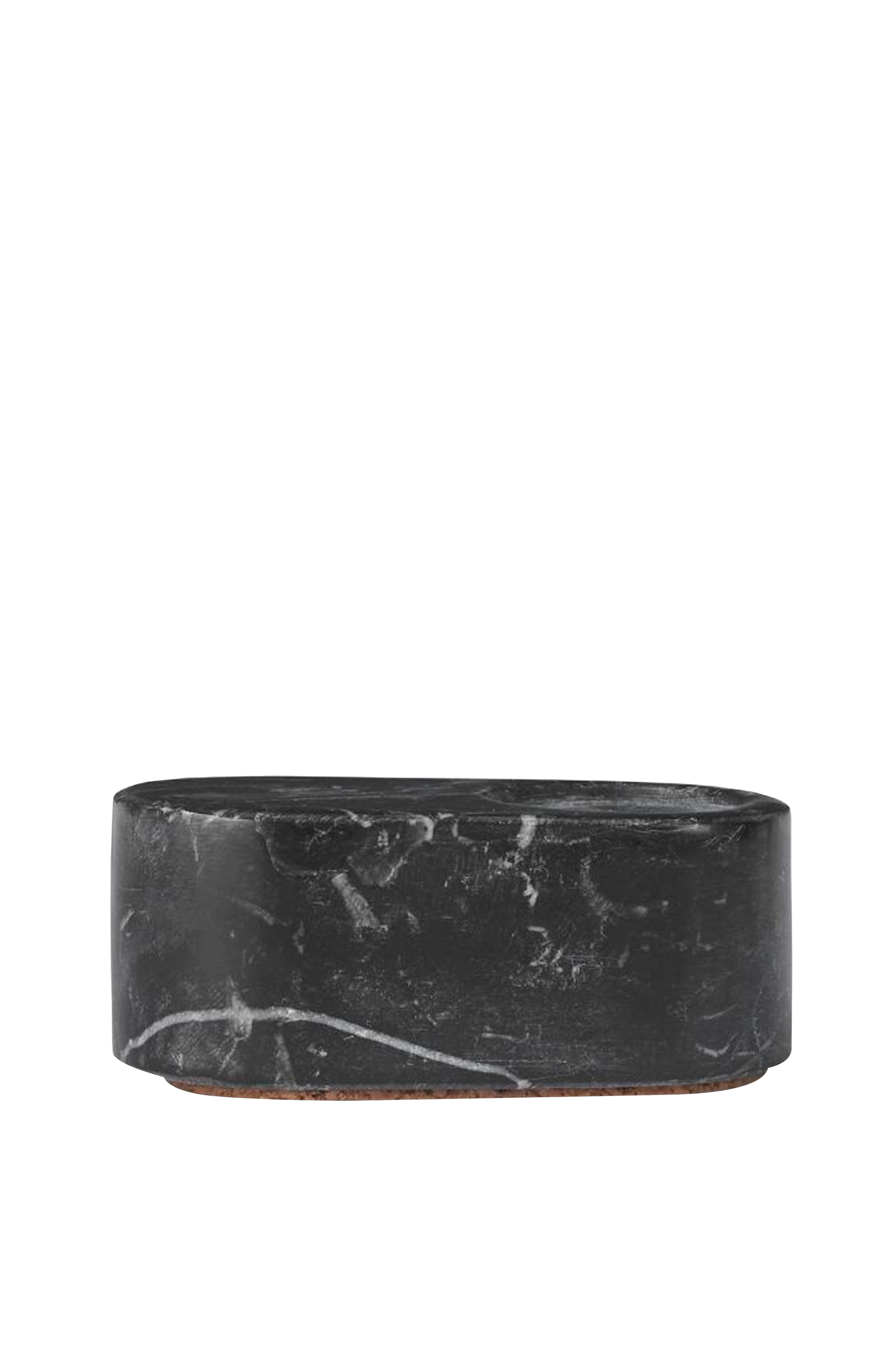 Ovaali är en minimalistisk och stilren ljusstake i marmor. Den enkla designen och de mjuka formerna ger ljusstaken ett lugnt uttryck som gör den till en välkommen gäst i alla hem. Ljusstaken utstrålar minimalistisk elegans, och den kommer att se vacker ut på fönsterbrädan, i matsalen eller på en hylla. Bredd: 3 cm längd: 8 cm höjd: 3 cm. Material: marmor. Övriga material: kork