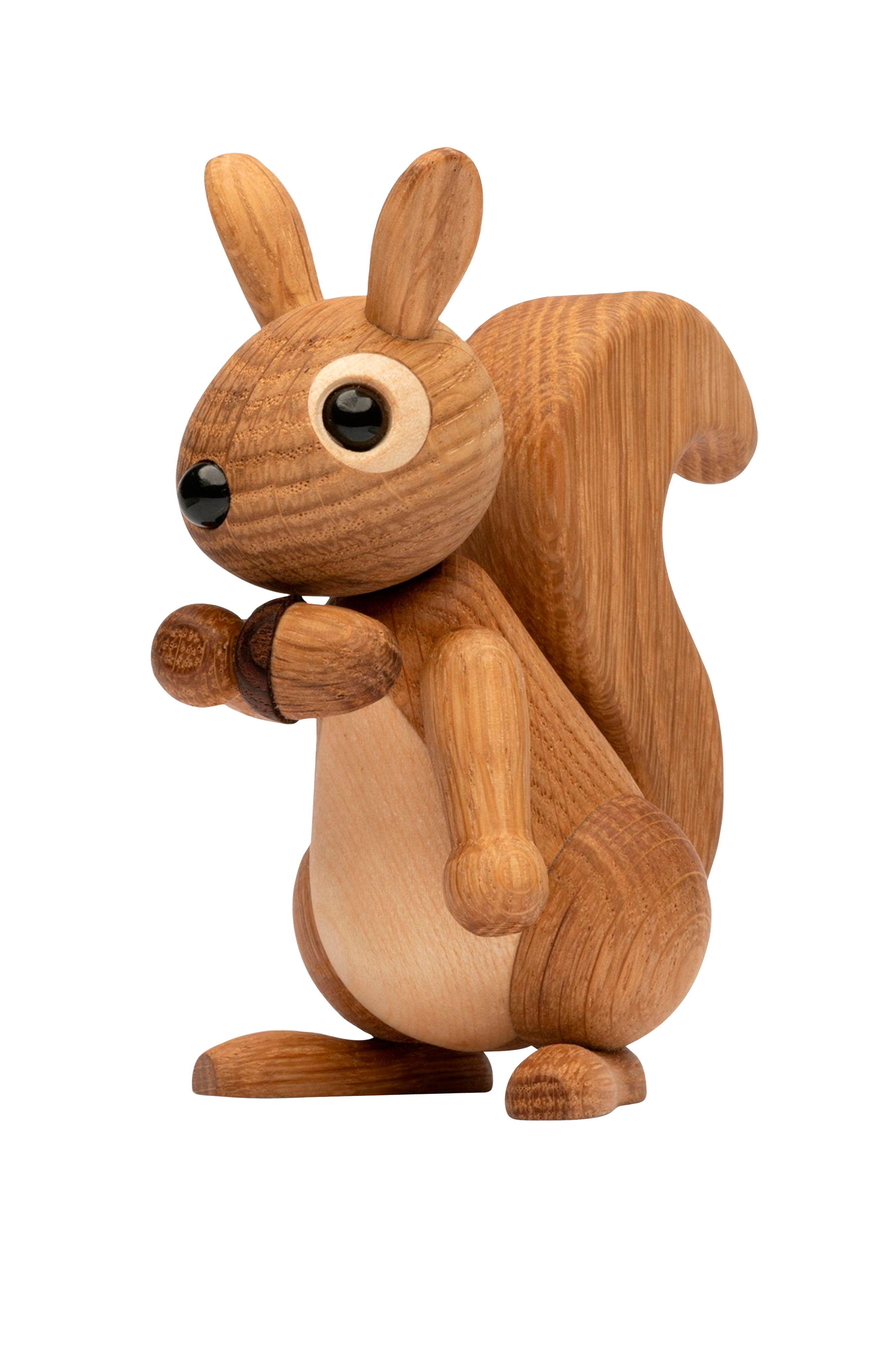 Möt hazel - en snabb och livlig varelse som snabbt springer upp och ner längs trädstammar och hoppar från gren till gren. Hon utstrålar erfarenhet och livsvisdom, vilket hon använder för att guida sin unge, peanut, genom livet. Med träets lugna och varma färg smyger hon in i ditt hem utan att dra för mycket uppmärksamhet, tills du plötsligt upptäcker henne och blir förtrollad.