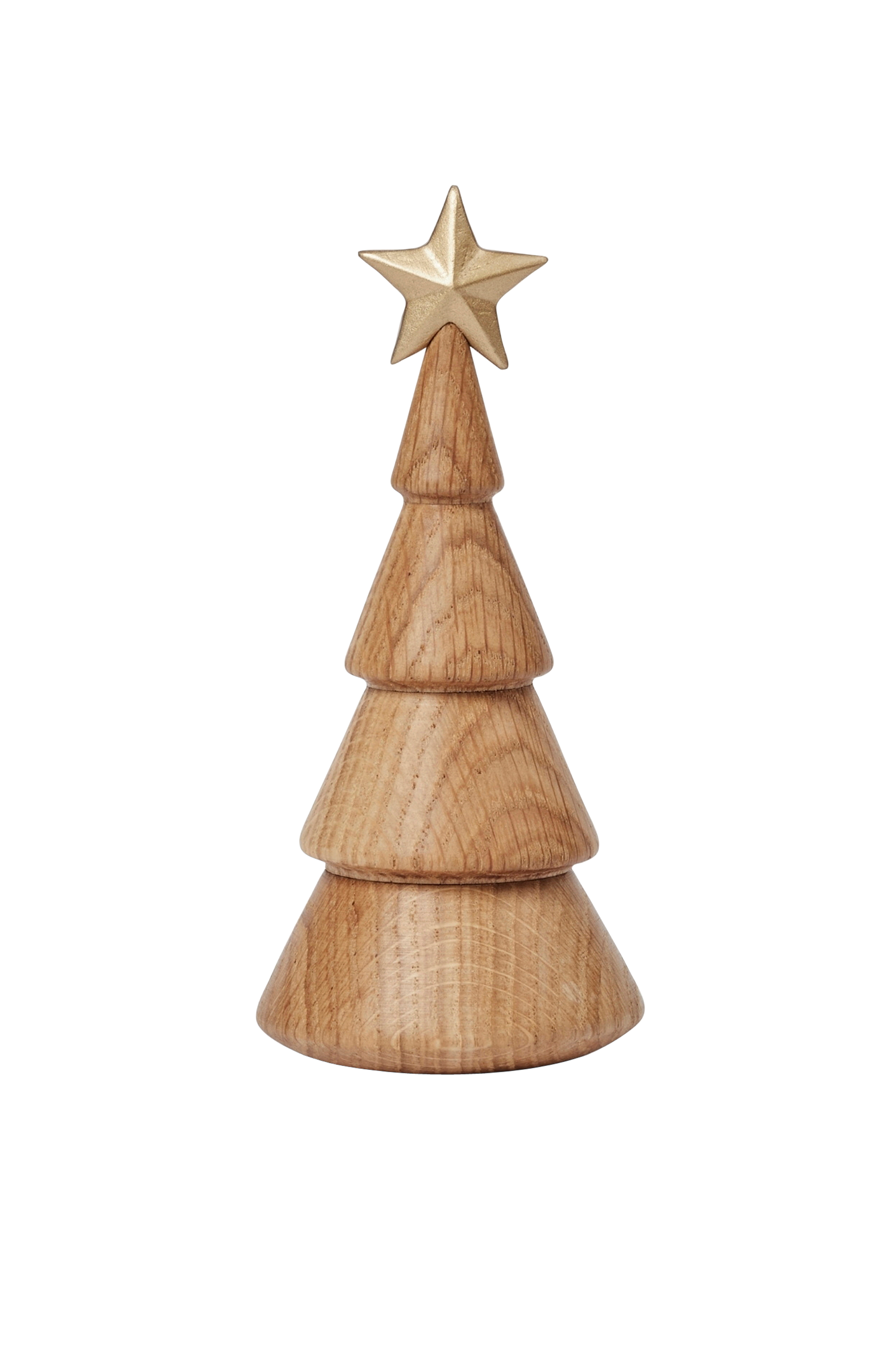 Julgranen är en vacker träfigur som fångar julens mysiga magi. Med en gyllene stjärna och en graciös lutning ger det här lilla trädet julig charm till alla rum. Perfekt som mittpunkt i din juldekoration och ger en minimalistisk charm till alla rum.