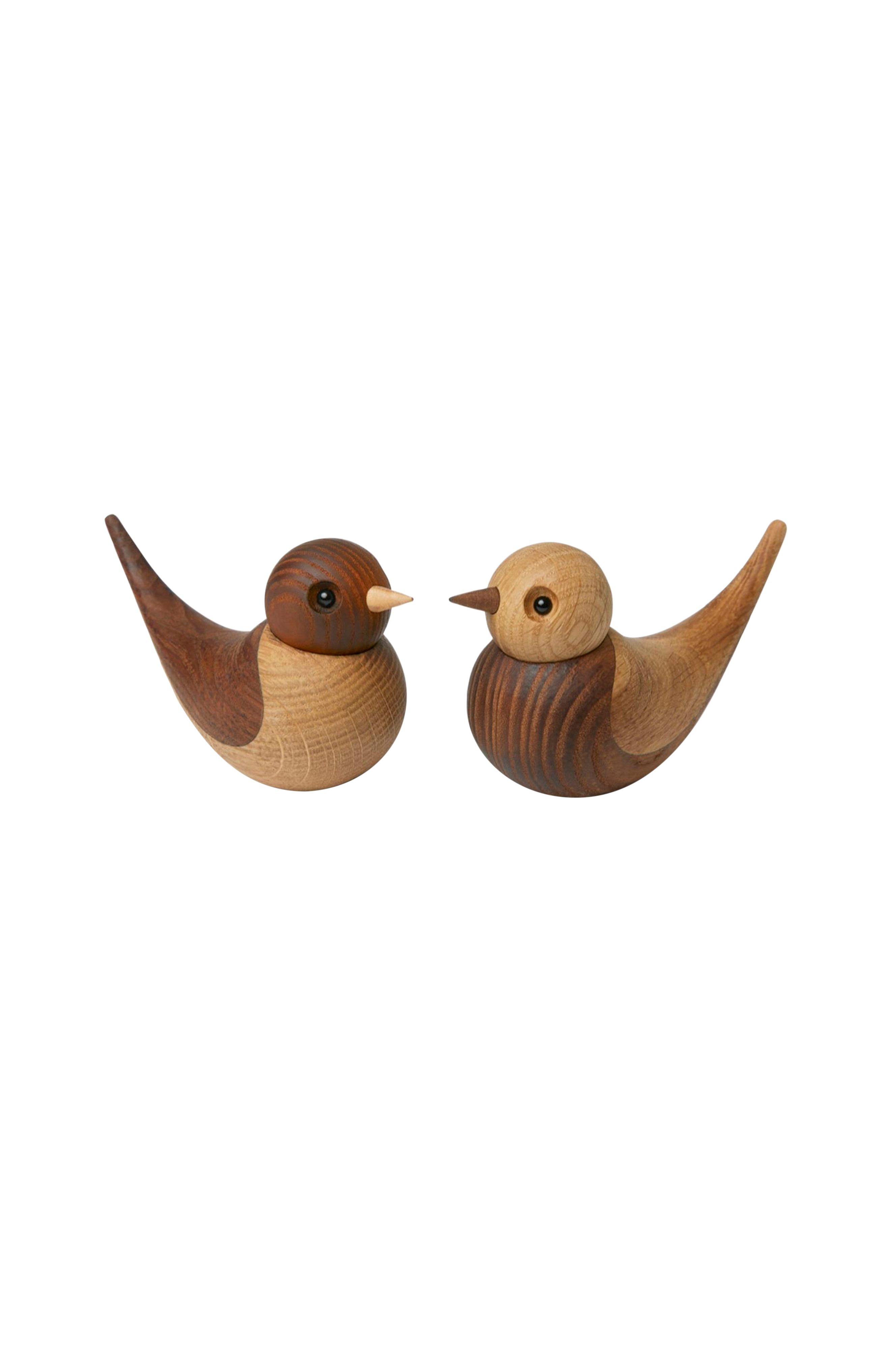 Åh, den stora kärleken. Det finns inget vackrare i livet och designerparet mencke&vagnby har nu tolkat kärleken på bästa sätt. Soulmates är två träfåglar som symboliserar ett livslångt partnerskap och det obrytbara bandet mellan de tu och levereras därför i ett sött set. En omtänksam present till någon du har kär. Dekorativ på fönsterbrädan, skrivbordet, skåpet eller bokhyllan. Soulmates har tillverkats av fsc®-märkt ek och ask. Utseendet kan variera då produktionsprocessen för materialet som både fågelns huvud och överkropp är gjord av alltid skapar skillnader i skugga vilket gör att träet ibland blir mörkare och ibland ljusare. Bredd: 5 cm, längd: 14 cm, höjd: 7 cm.