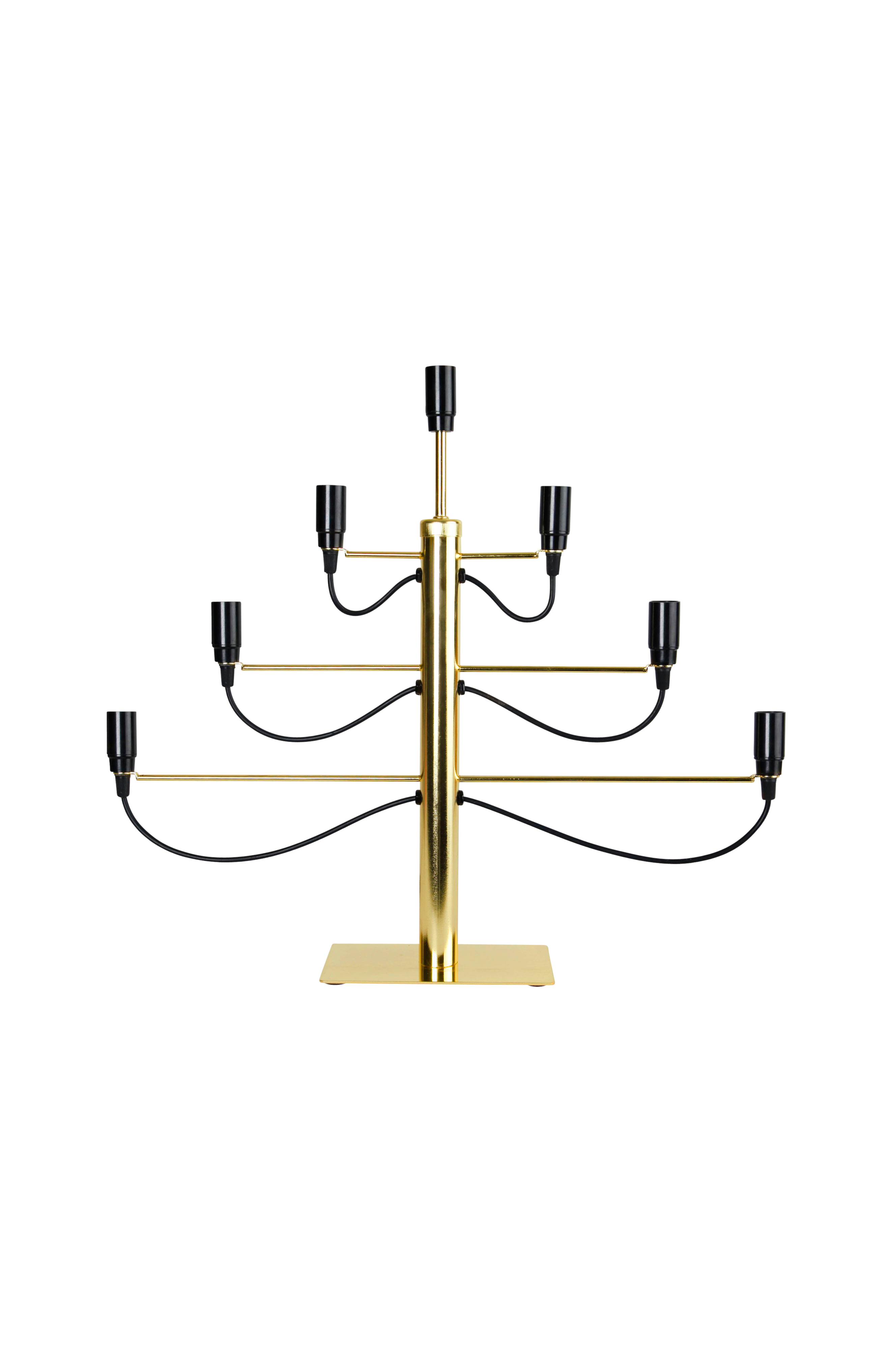 Trendig ljusstake, Milano, med plats för 7 stycken E14 lampor Höjd 55 cm. Djup 10 cm. Bredd 60 cm. Anslutningskabel 1,8 m med brytare. Ljuskällor ingår ej.
