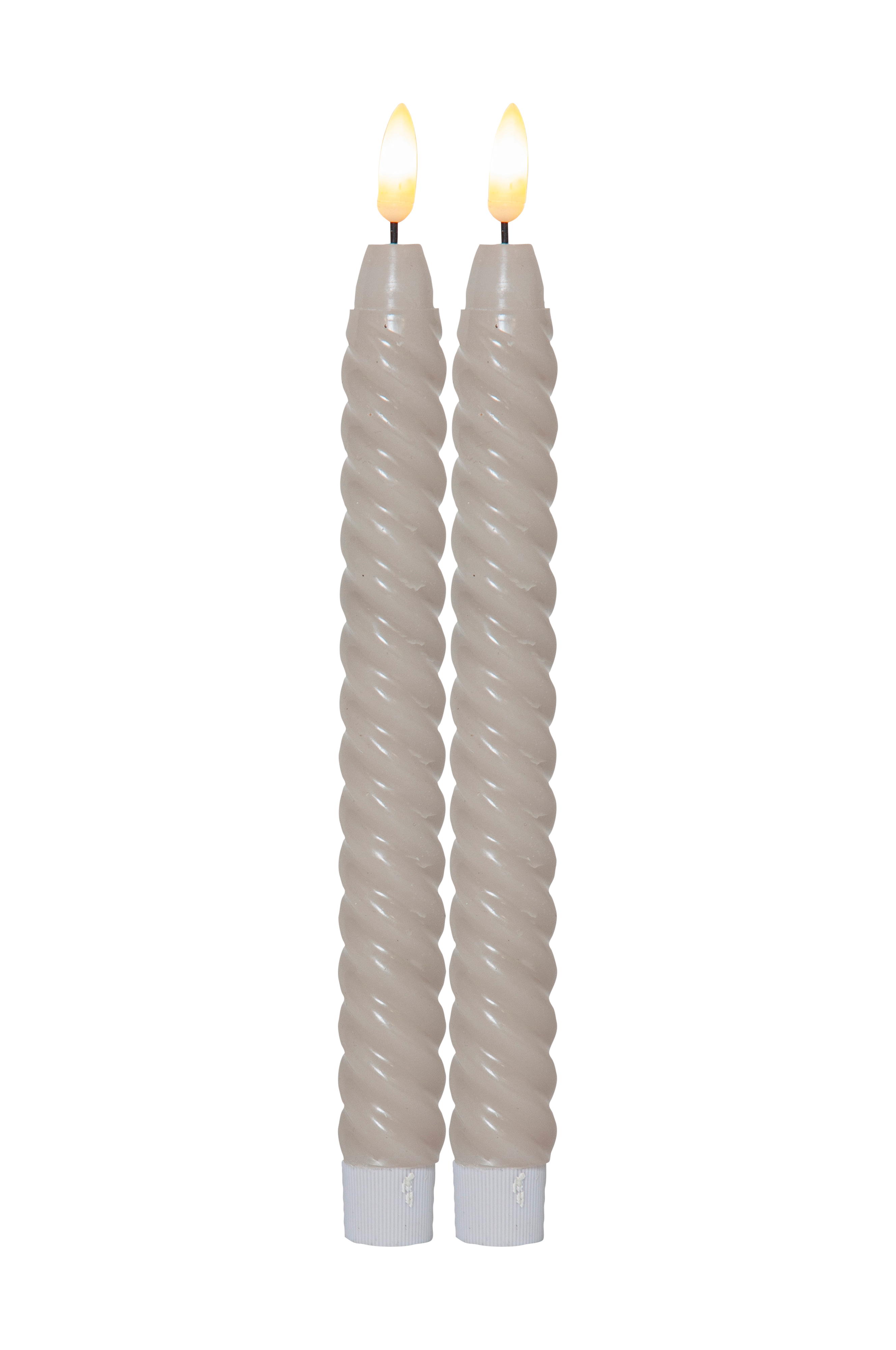 2-p antikljus med twist formad vax i vår Flamme serie. Den naturtrogna lågan lyser med ett varmt sken. Med inbyggd timer. Storlek på ljuset med låga 25 cm, bredd 2,3 cm. Med inbyggd timerfunktion, 6 h på, 18 h av, repeterande. Medellivslängd 10000h. Total effekt (W): 0,03 W.