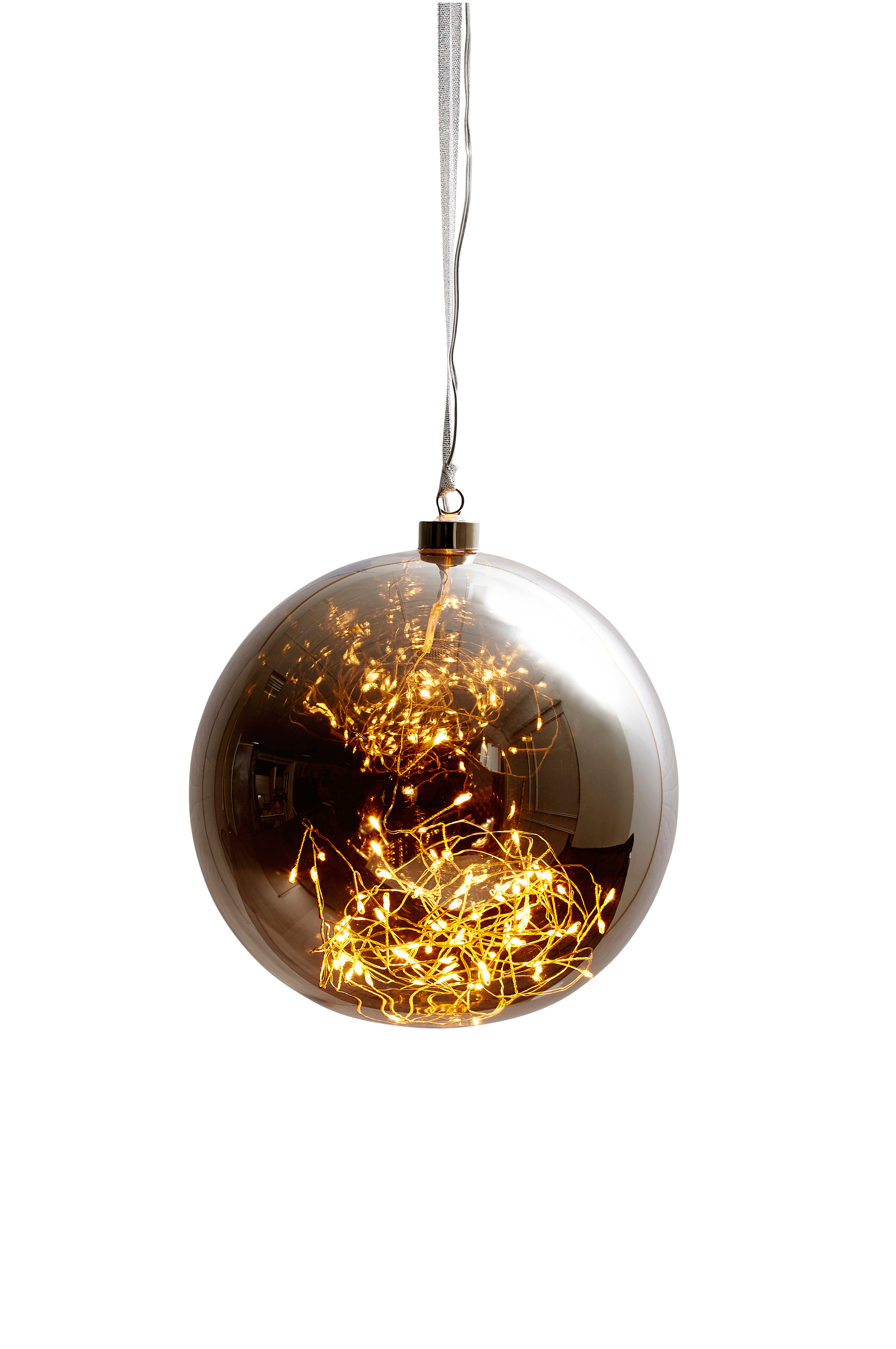 Glaskula med dew dropsslinga. 20 cm. Slingan har 80 LED ljuskällor. En mycket fin glasdekoration som ger ett vackert sken och kan hängas fritt i hemmets alla rum.