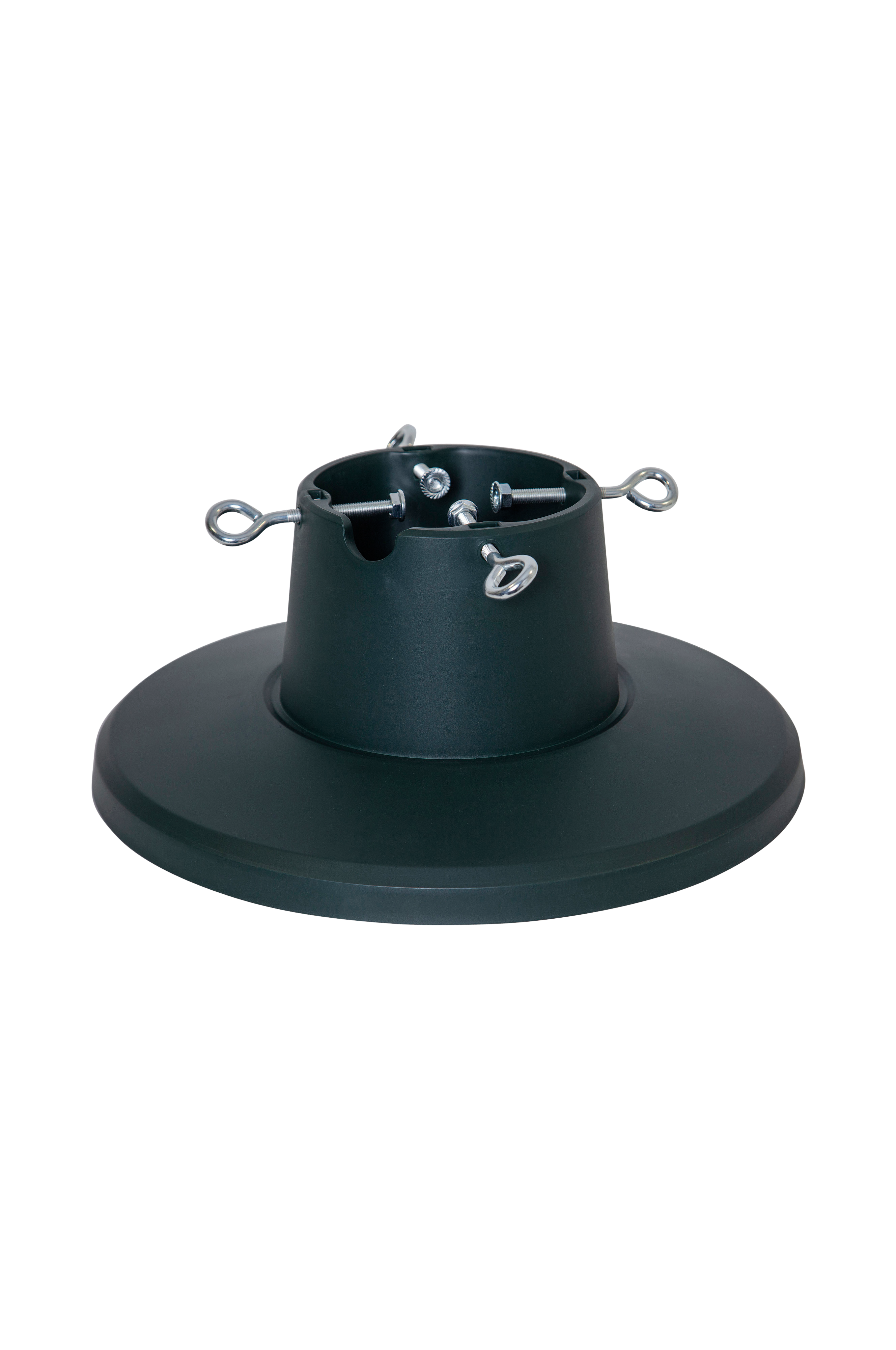 Granfot med plastbehållare och bas. För granar med en basdiameter mellan 3,5-10,5 cm och en höjd upp till 210 cm. Vattenbehållaren rymmer ca 1,6 L. Observera att skruvarna sitter fast i botten.