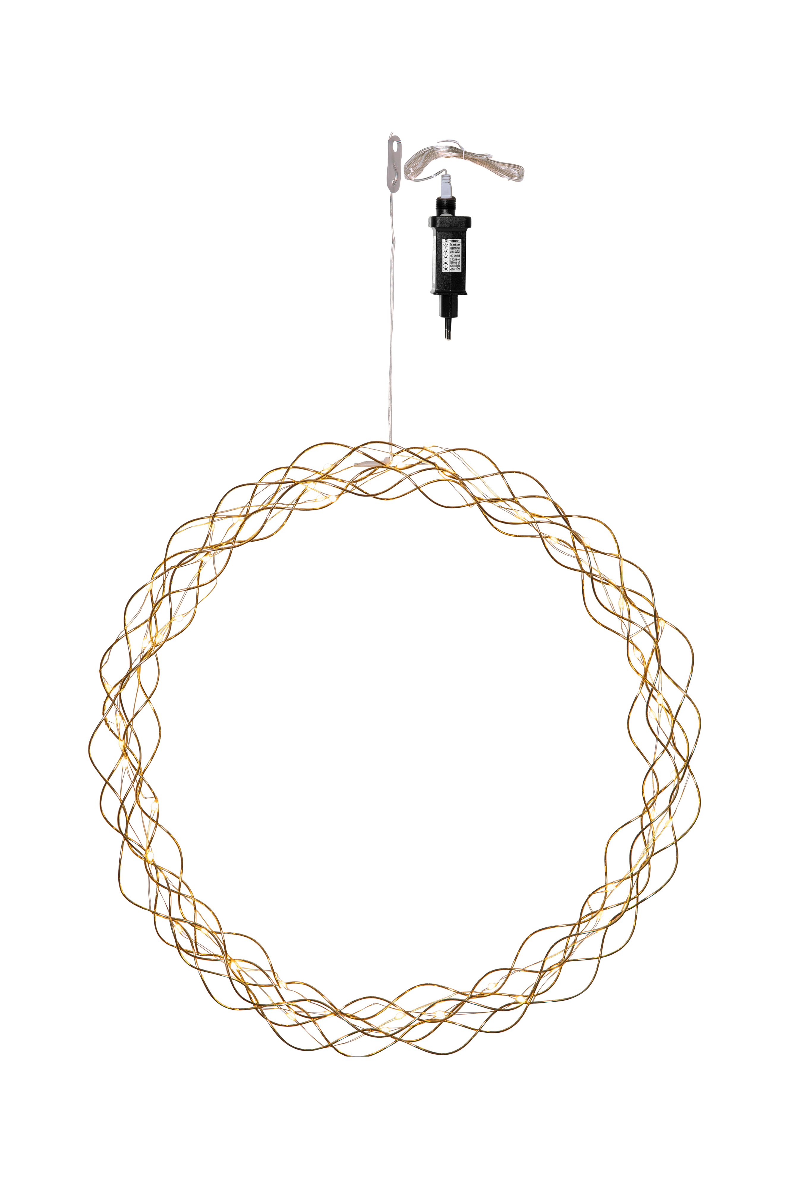 Dekorativ krans med daggdroppsljuskedja för inomhusbruk. Kransen har 50 led-ljuspunkter med varmvitt sken. Dimmer i tre steg och timer. Fin dekoration att hänga i fönstret.