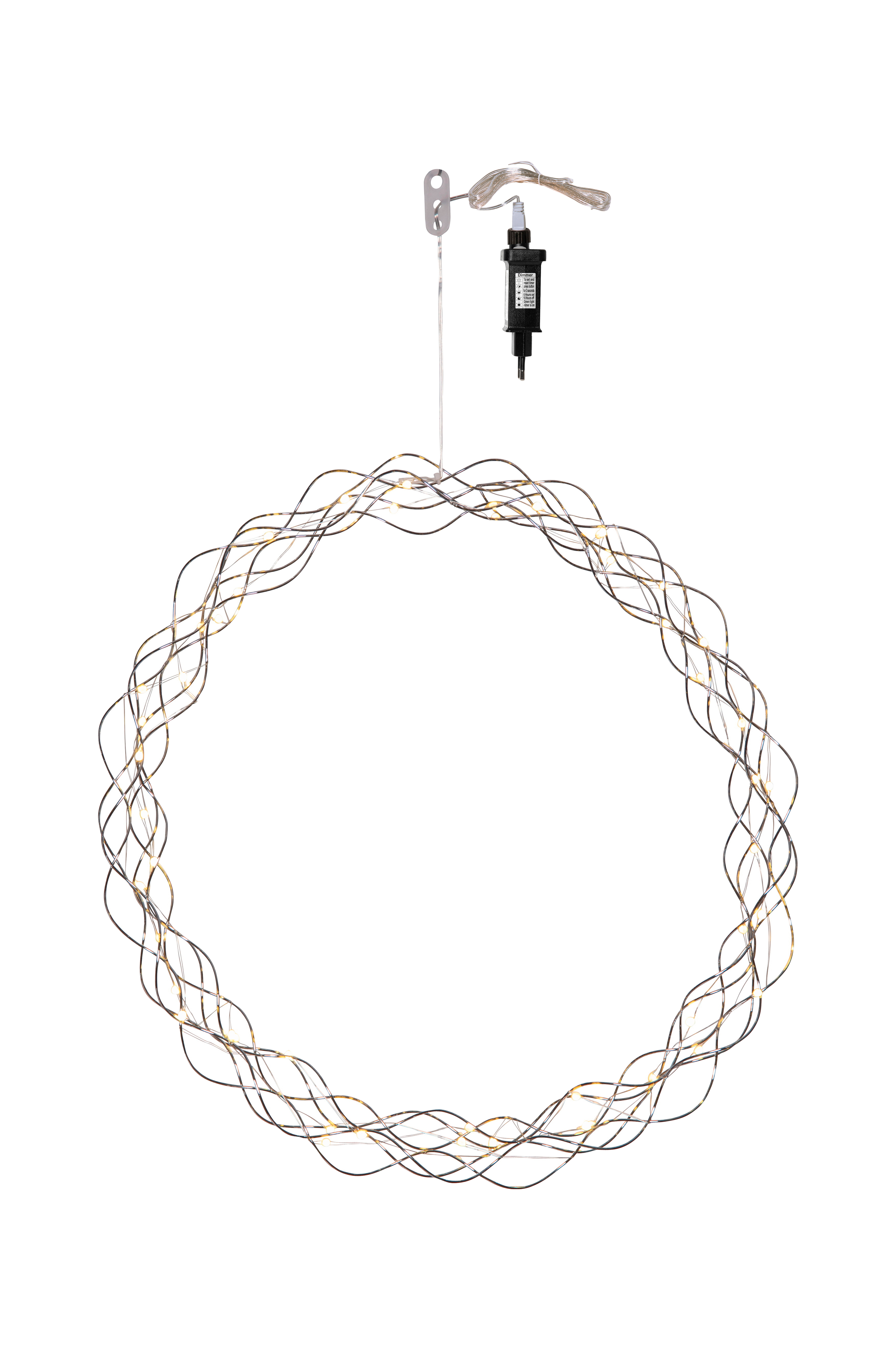 Dekorativ krans med daggdroppsljuskedja för inomhusbruk. Kransen har 50 led-ljuspunkter med varmvitt sken. Dimmer i tre steg och timer. Fin dekoration att hänga i fönstret.