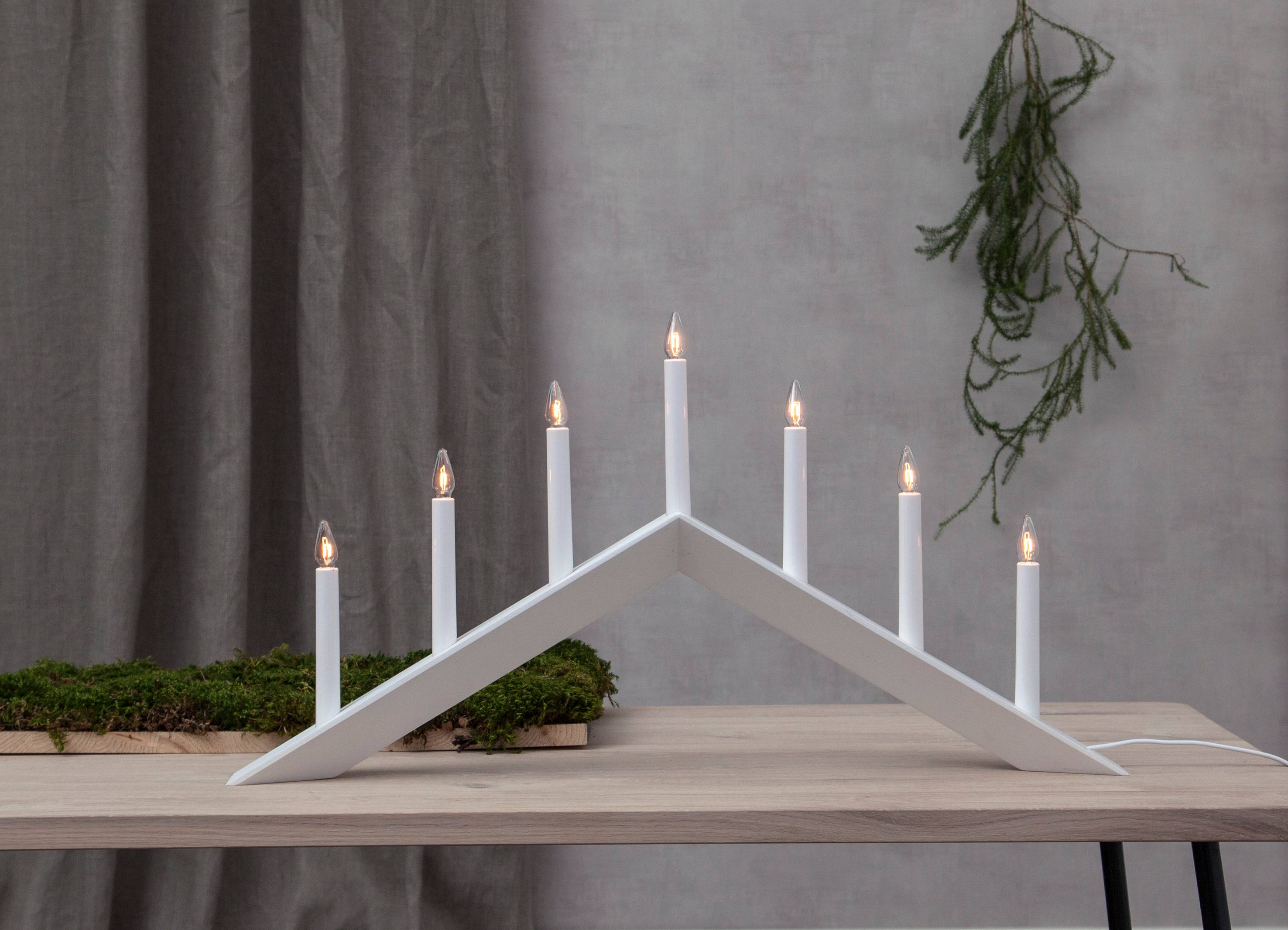 Stilren träljusstake med en häftig form. Levereras tillsammans med fina ljuskällor. Höjd 36 cm, bredd 69 cm, djup 7 cm. Sockel E10. Sladdlängd 180 cm.