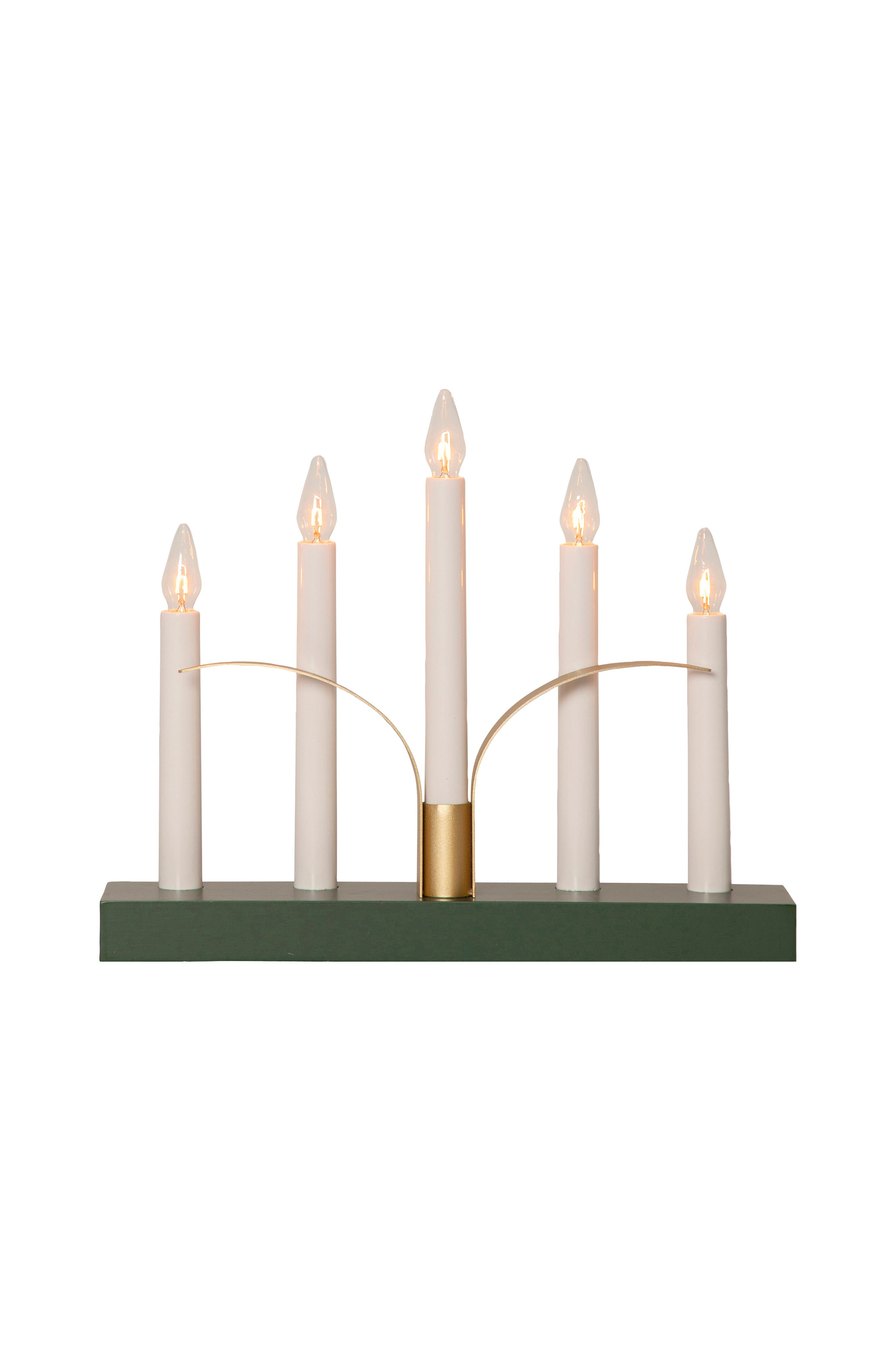 Stämningsfull adventsljusstake tillverkad i trä med mässingsfärgad dekoration. Ljusstaken är liten och nätt och därför lätt placerad både fönster eller på en skänk. Julen blir något alldeles extra med stämningsfulla Lilja som dekoration.