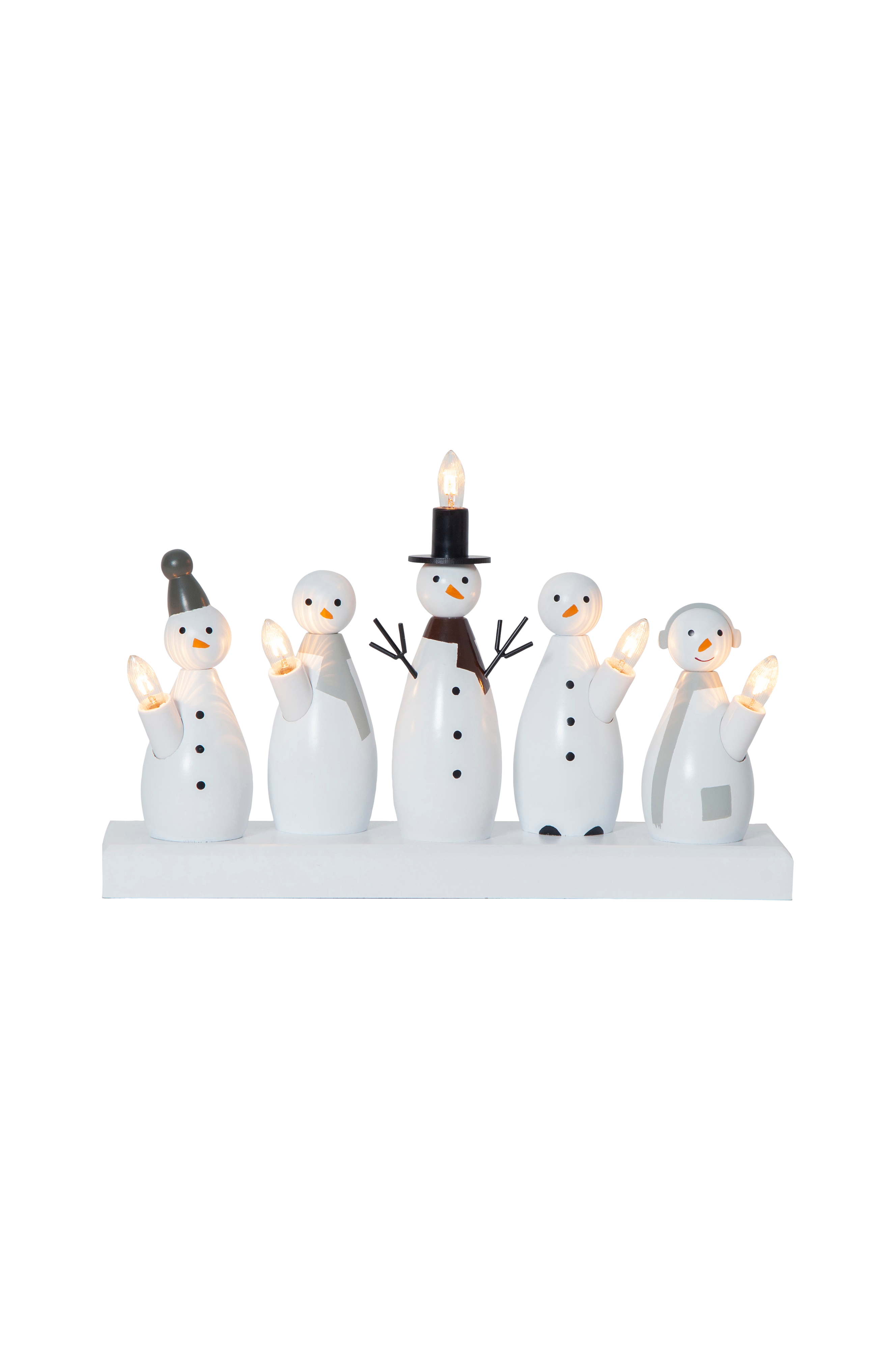 Härliga snögubbar i form av en adventsljusstake, tillverkad i trä. Ljusstaken ger en fantastisk härlig och glad julstämning. Placera den i ett fönster, på en hylla eller och på en skänk. Julens gladaste dekoration gör det lilla extra. Total effekt 15 W. Ljuskällans effekt 3 W.