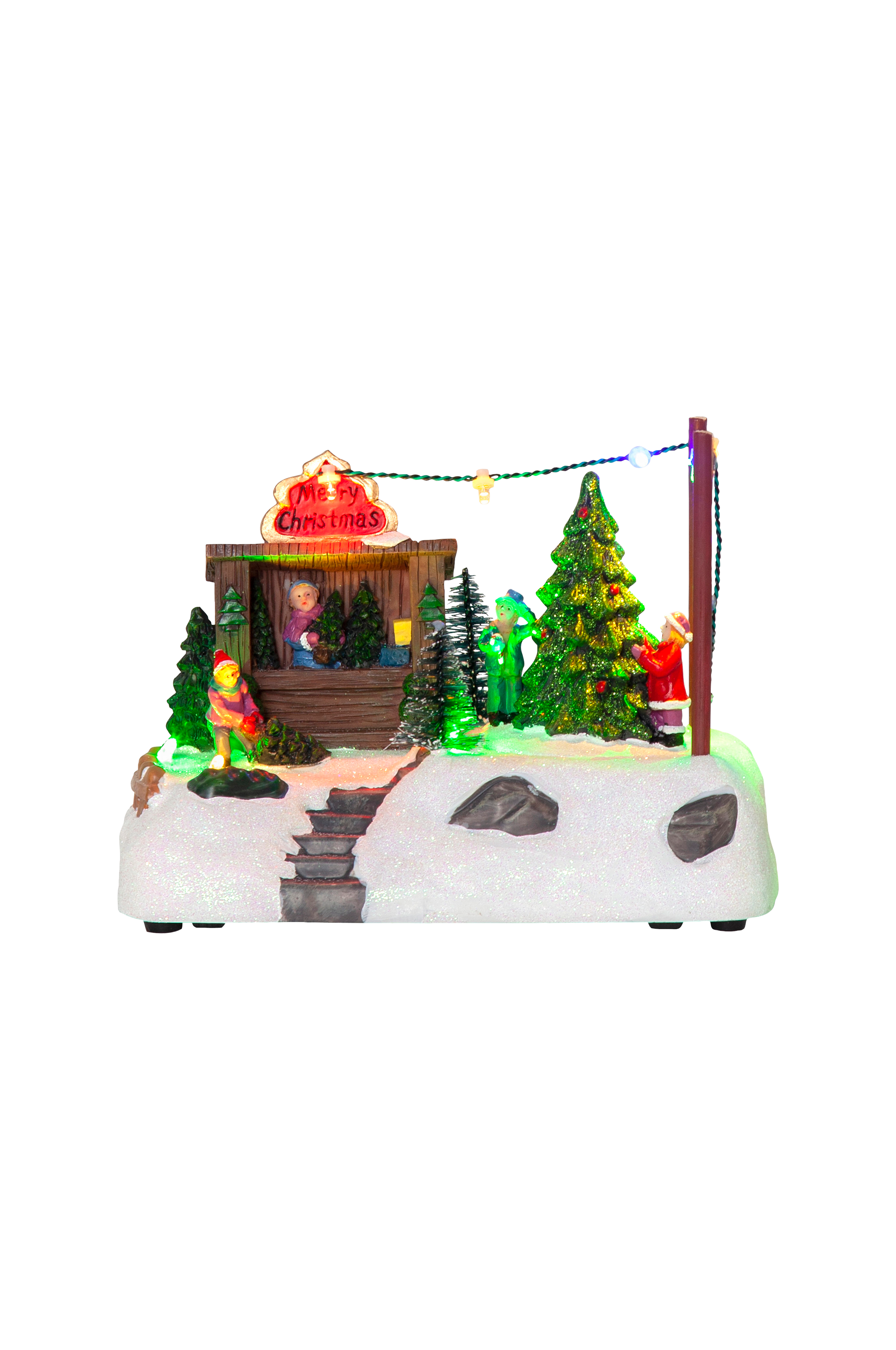 En härlig juldekoraion, julgrans försäljning. Det lyser mysigt runt huset. Alltihop ger en mysig julkänslan. Julgranen roter och om man vill spelar byn 8 julsånger. Dekorera till advent och jul, passar både barnrummet och i en hylla.