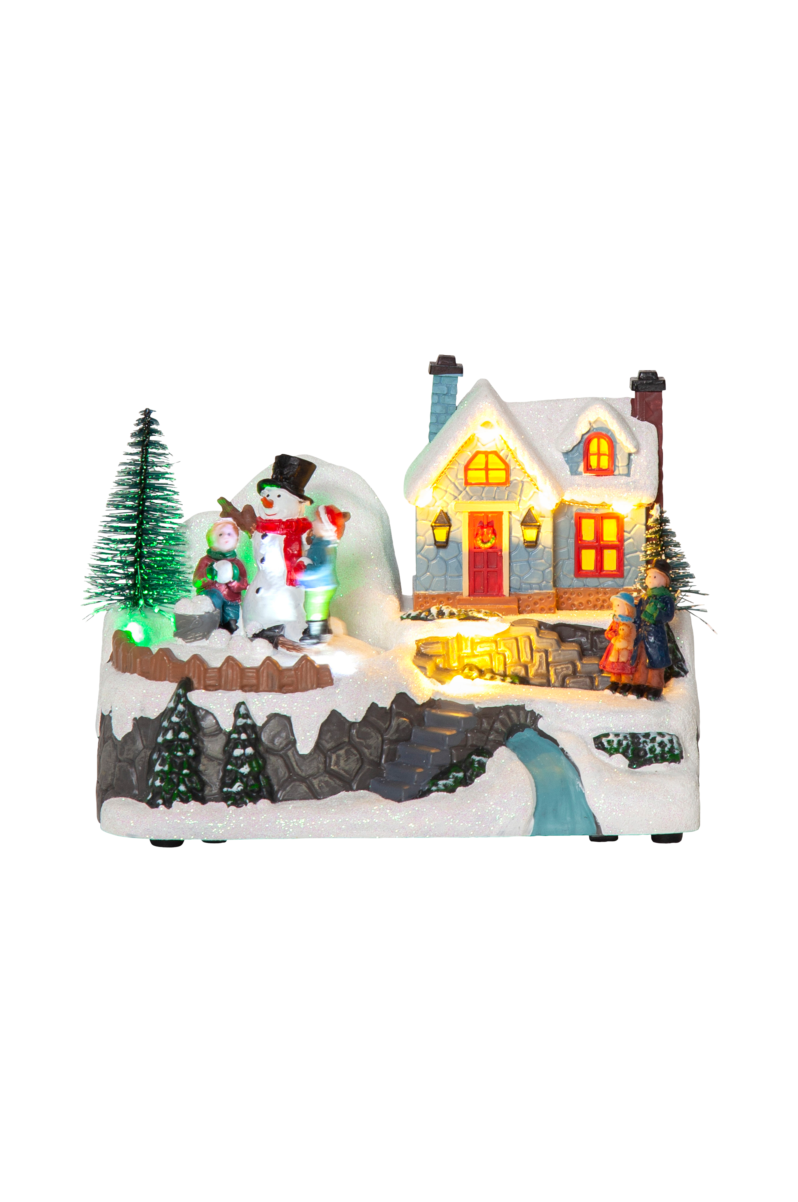 En härlig juldekoraion, barnen och snögubben leker i snön. Det lyser mysigt runt huset. Alltihop ger en mysig julkänslan. Snögubbenoch barnen roter och om man vill spelar byn 8 julsånger. Dekorera till advent och jul, passar både barnrummet och i en hylla i köket.