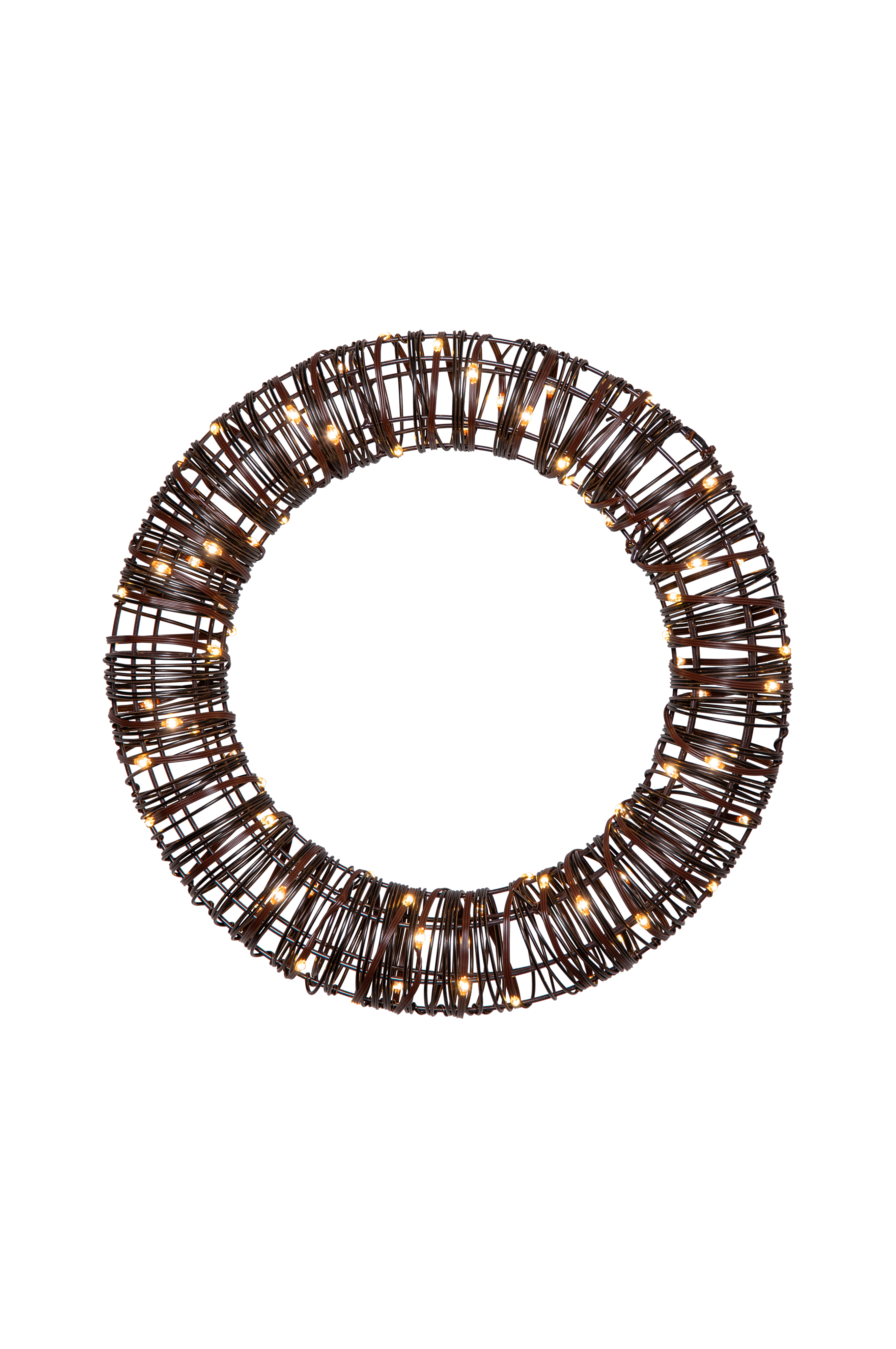 40 cm krans i metallram med brun konstrotting, 80 varmvita lysdioder. Dekorera din trädgård eller ditt hem. Lämplig för både inom- och utomhusbruk.