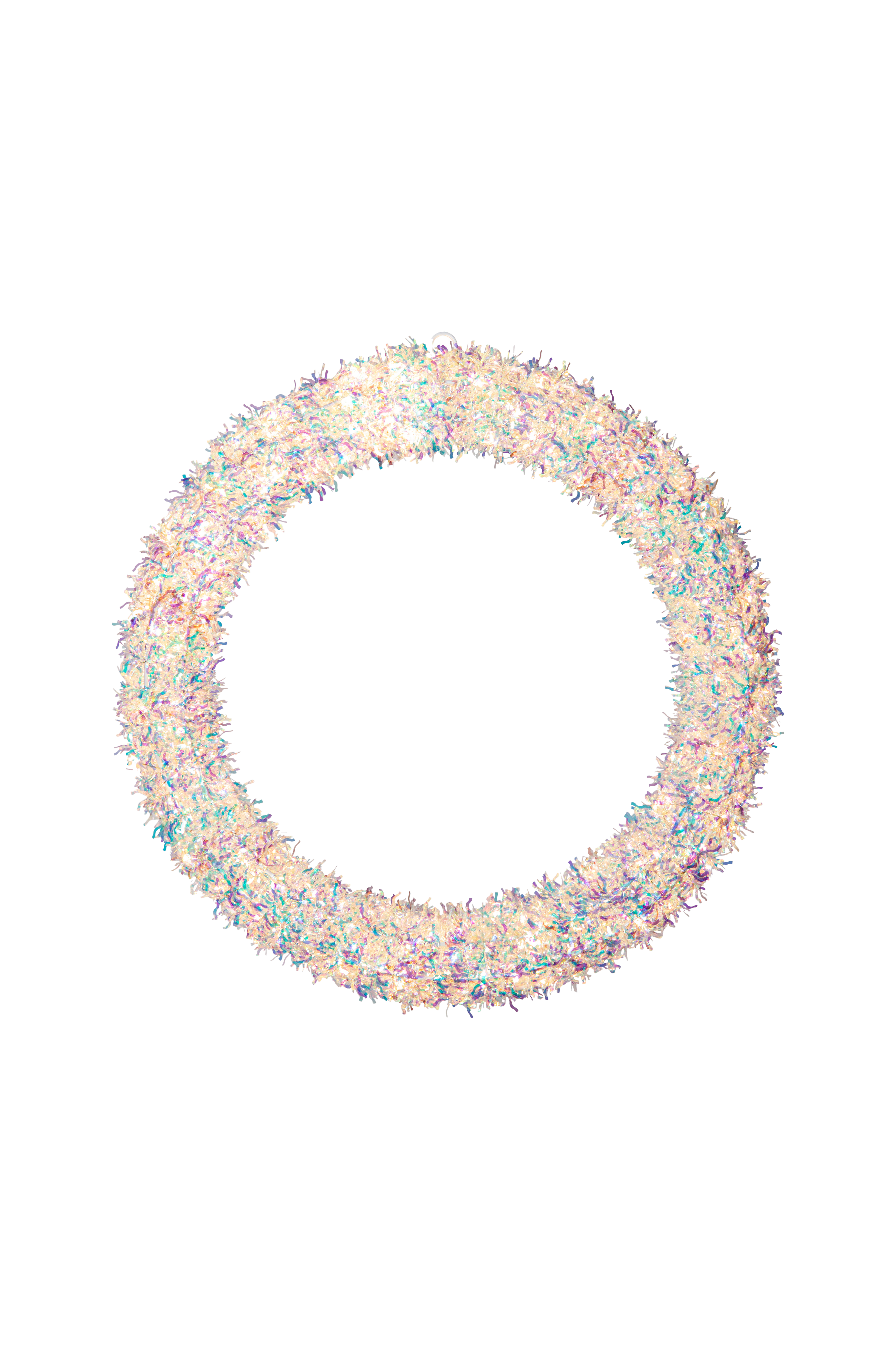 Krans, 45 cm i diameter, med effektfullt skimrande pet-material, sprider ett mjukt ljus som skapar en otroligt mysig atmosfär. Ip44-klassad transformator. Finns i två storlekar.