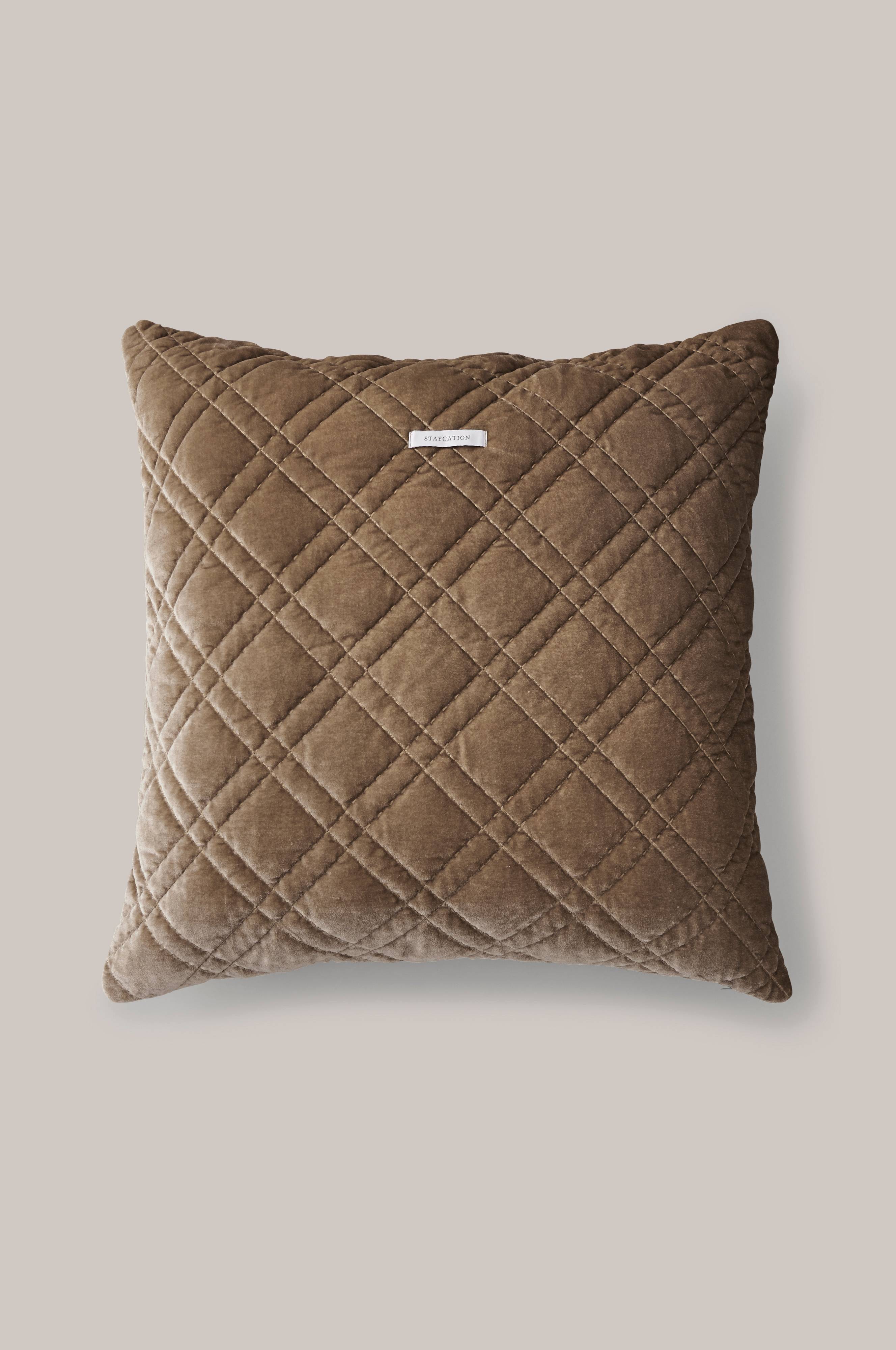 Quiltat kuddfodral i krossad sammet med fin lyster. Kuddfodralet är quiltat på båda sidorna och har dragkedja i nederkanten. Fyllning av 120 g polyester. Stl 65x65 cm.