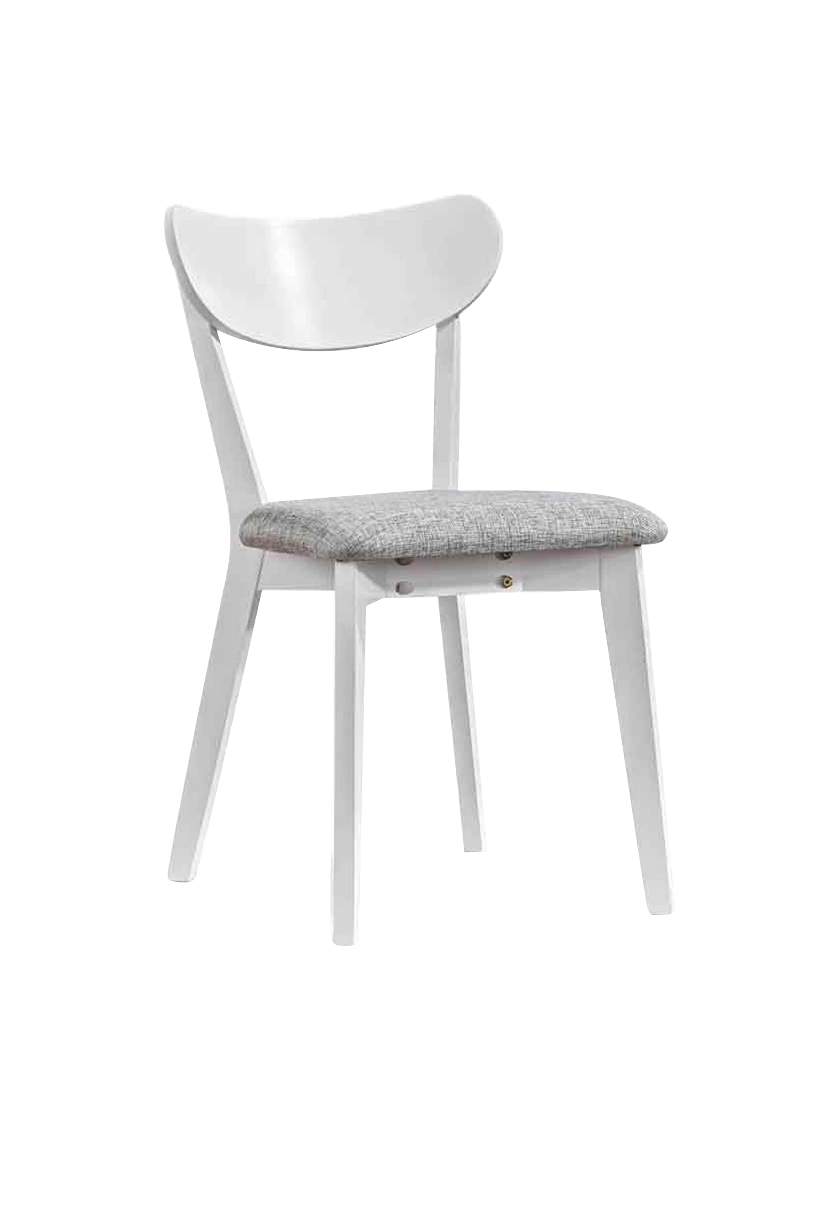 Trendig matstol i massivt trä med grå tygklädsel.