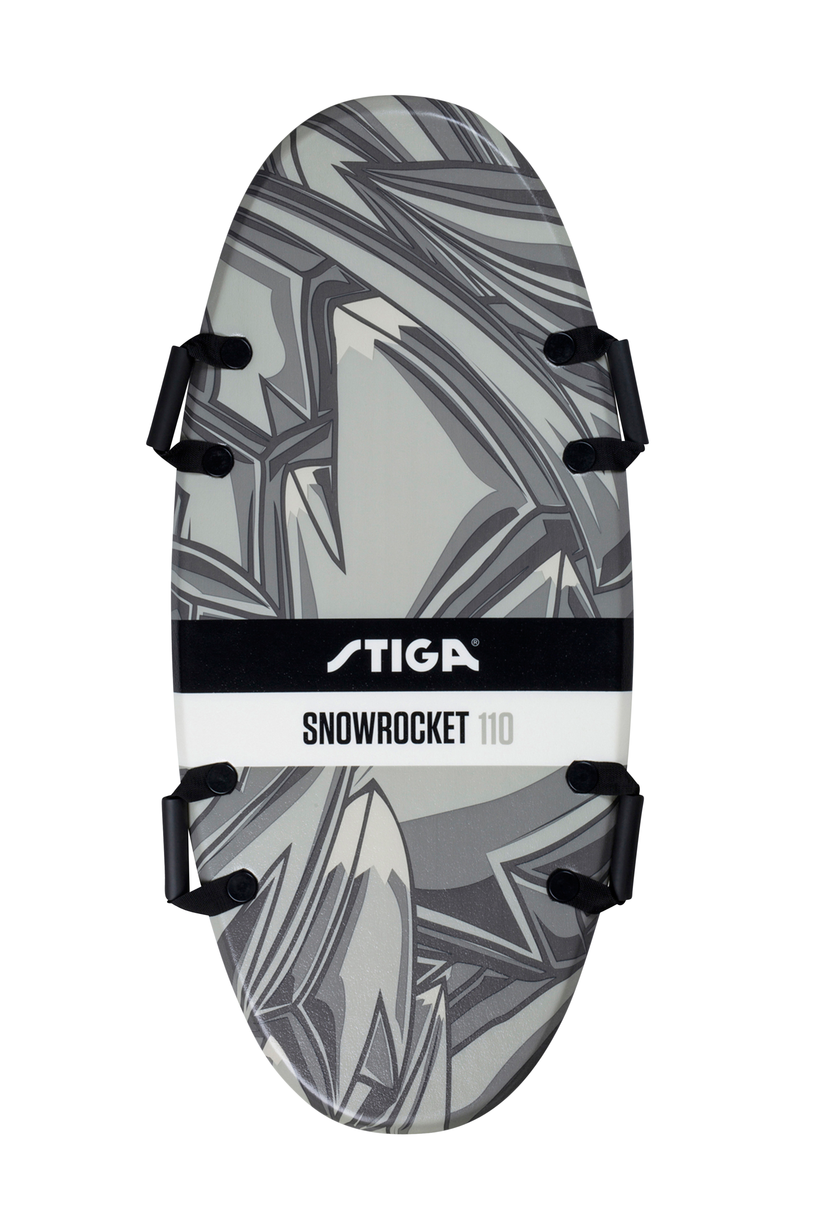 En lätt åkbräda med modern, grafisk design. Den ribbade undersidan ger perfekt fart och glid och gör brädan lättare att styra. Det lätta materialet och de fyra handtagen gör den enkel att bära med sig.
