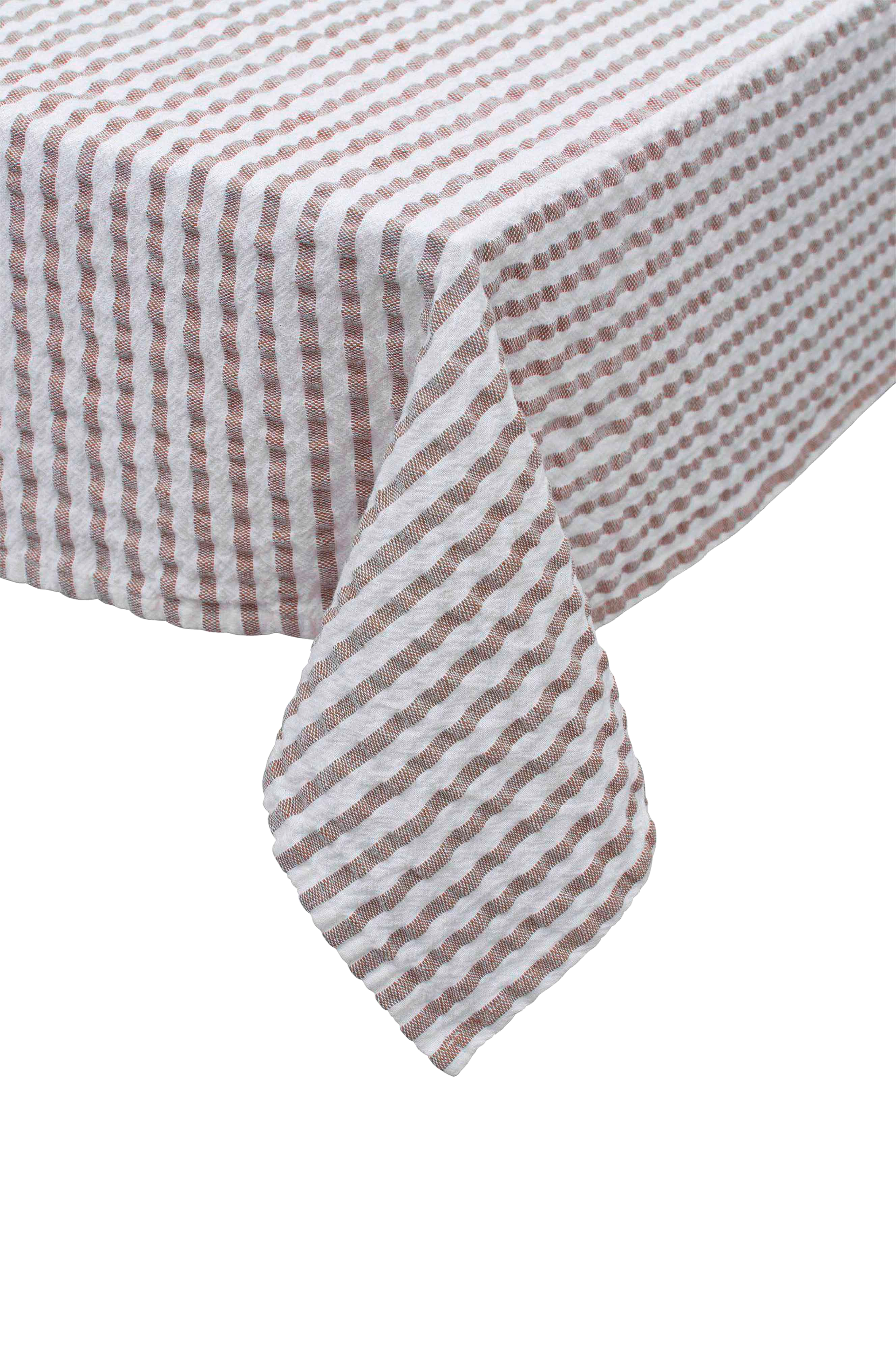 Bordsduk i mjuk bomullskvalitet med garnfärgad randig design i mjuk bomullskvalitet och tvättad effekt. Storlek 145x280cm. Använd tillsammans med matchande servett och bordsskydd för en snygg dukning. Produkten är certifierad enligt standard 100 av oeko-tex®. Certifieringen garanterar att produkten är testad och fri från ämnen som kan vara skadliga för hälsan.