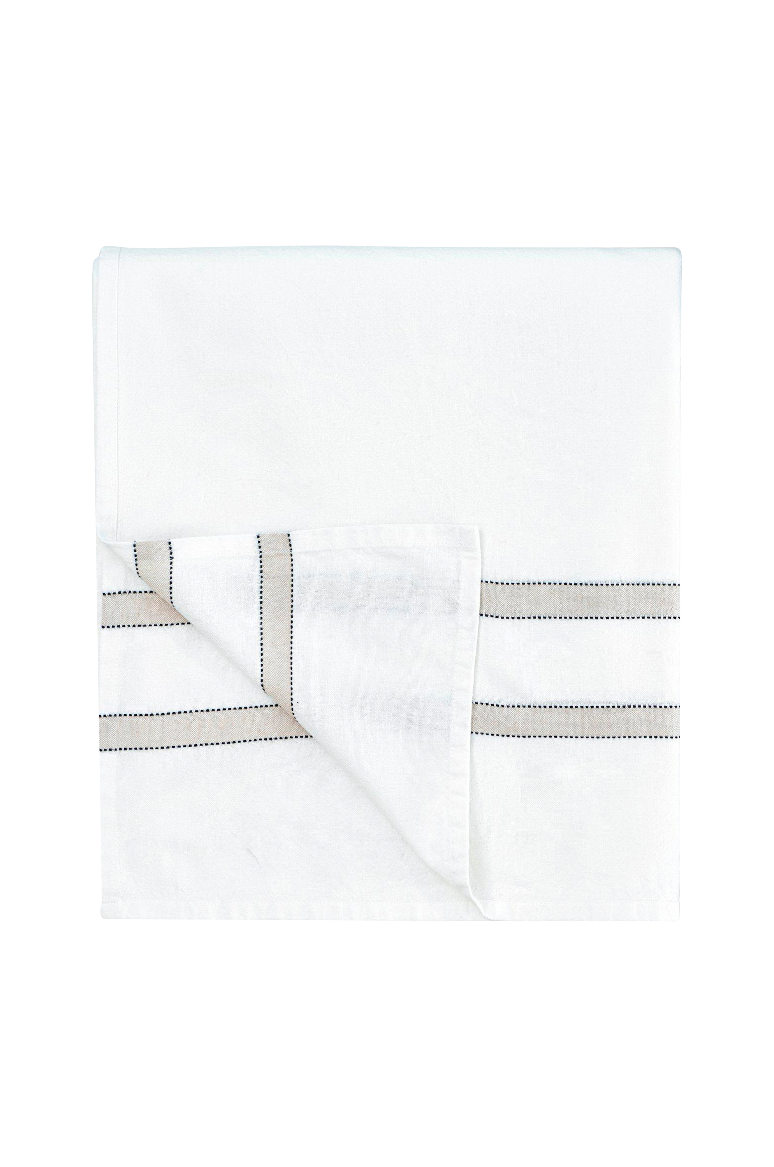 Bordsduk i mjuk bomullkvalitet och lätt tvättad känsla, garnfärgad rand på båda kortsidorna. Mått 145x280cm. Duka gärna med matchande tygservetter och addera en bordsfilt under duken för en riktig lyxig dukning.