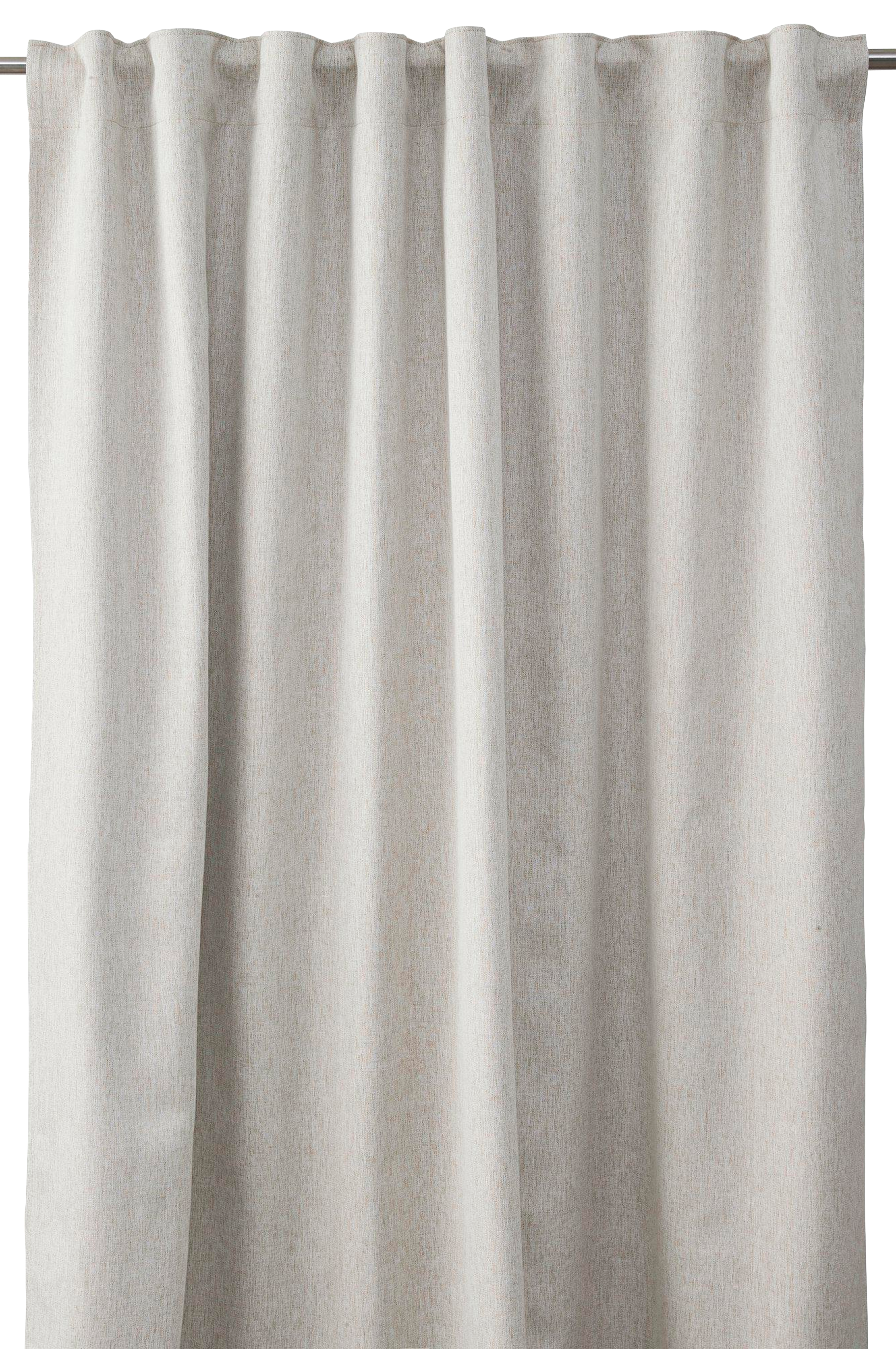 1-pack extra bred mörkläggningsgardin med multiband i ovankant, fållade långsidor och overlocksöm i nederkant. Avigsidan är ljust beige. Tyget är klassat som Blackout, det har svarta trådar invävt i sig (som inte syns), dessa absorberar ljuset så att det inte tränger igenom. Använd snabbfållningsband för att få rätt längd på gardinen. Multibandet är en flexibel lösning som gör att gardinen kan hängas upp antingen med fingerkrokar, räkor eller direkt på en stång beroende på vilken typ av veck och vilket fall du vill ha på gardinen. 100% Polyester.