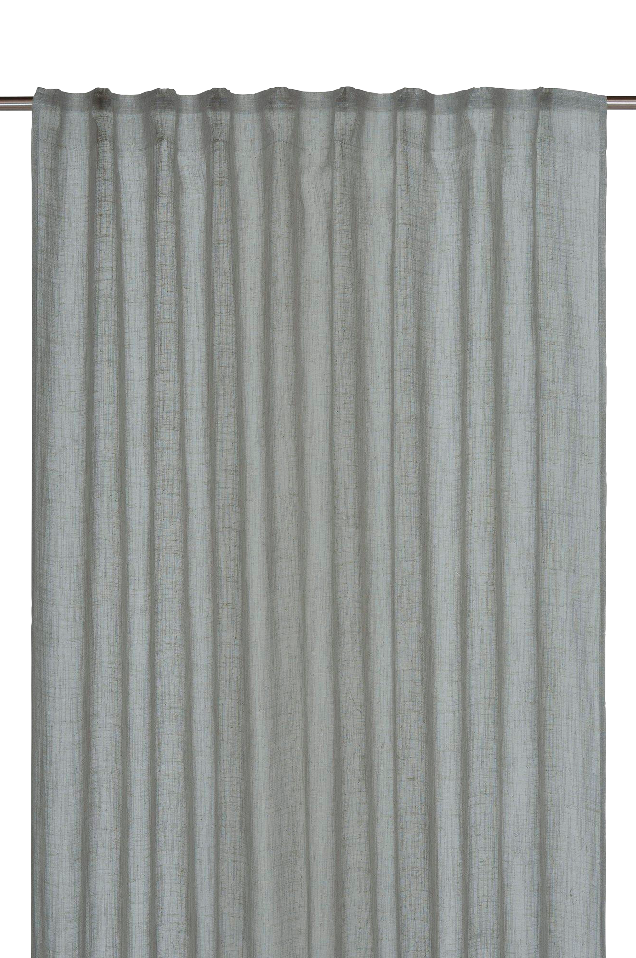 2-pack gardinlängd med multiband i ovankant, fållade långsidor och overlocksöm i nederkant. Det skira tyget med inslag av lin silar ljuset och har en vacker slubbeffekt, det är helt skrynkelfritt och faller vackert. Använd snabbfållningsband för att få rätt längd på gardinen. Multibandet är en flexibel lösning som gör att gardinen kan hängas upp antingen med fingerkrokar, räkor eller direkt på en stång beroende på vilken typ av veck och vilket fall du vill ha på gardinen. Produkten är certifierad enligt standard 100 by oeko-tex®. Certifieringen garanterar att produkten är testad och fri från ämnen som kan vara skadliga för hälsan och miljön. 85% polyester, 15% lin.