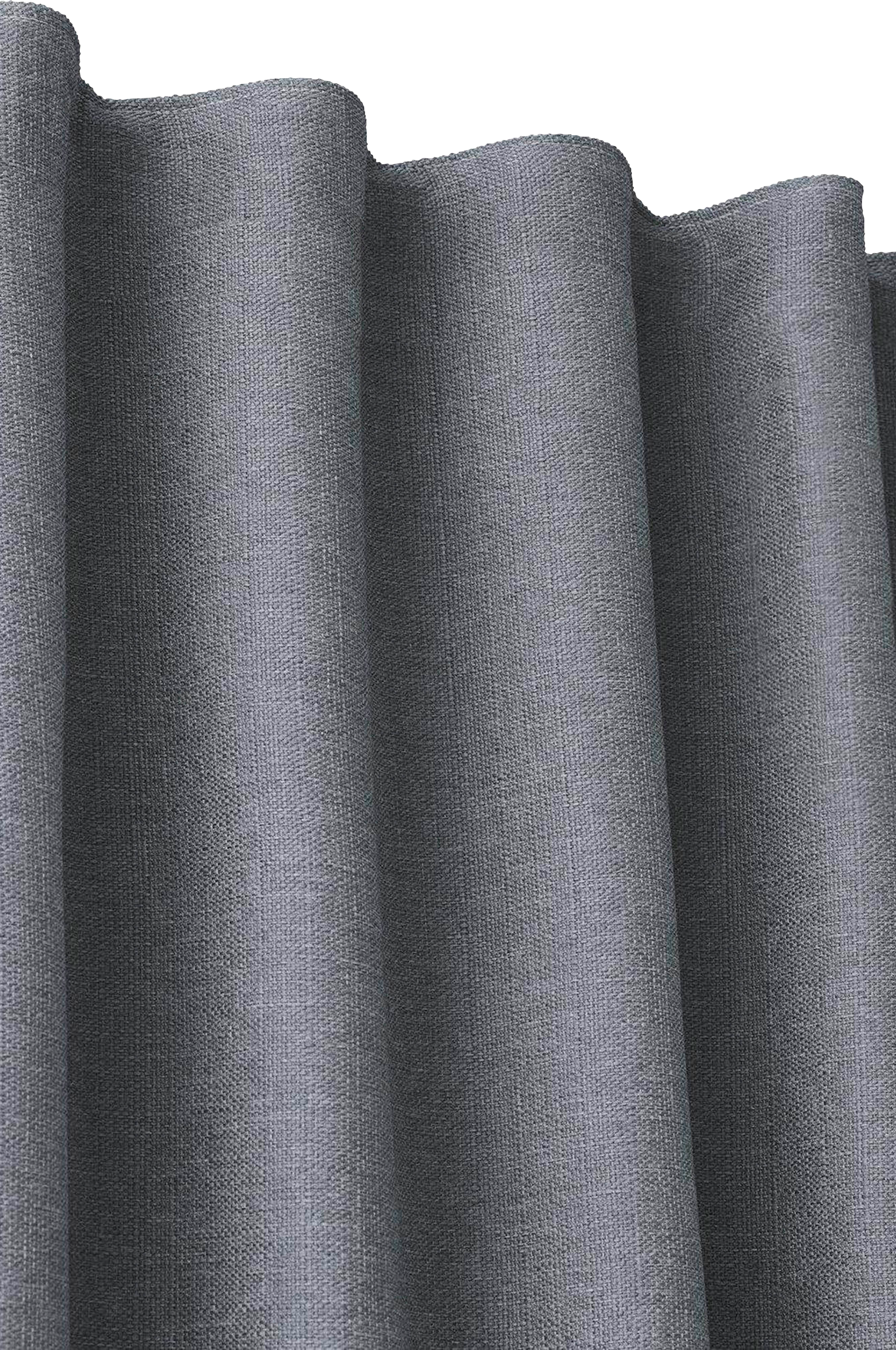 2-pack mörkläggningsgardiner med multiband i ovankant, fållade långsidor och overlocksöm i nederkant. Tyget har svarta trådar invävt i sig (som inte syns), dessa absorberar ljuset så att det inte tränger igenom. Använd snabbfållningsband för att få rätt längd på gardinen. Multibandet är en flexibel lösning som gör att gardinen kan hängas upp antingen med fingerkrokar, räkor eller direkt på en stång beroende på vilken typ av veck och vilket fall du vill ha på gardinen. Produkten är certifierad enligt STANDARD 100 by OEKO-TEX®. Certifieringen garanterar att produkten är testad och fri från ämnen som kan vara skadliga för hälsan och miljön. 100% Polyester.