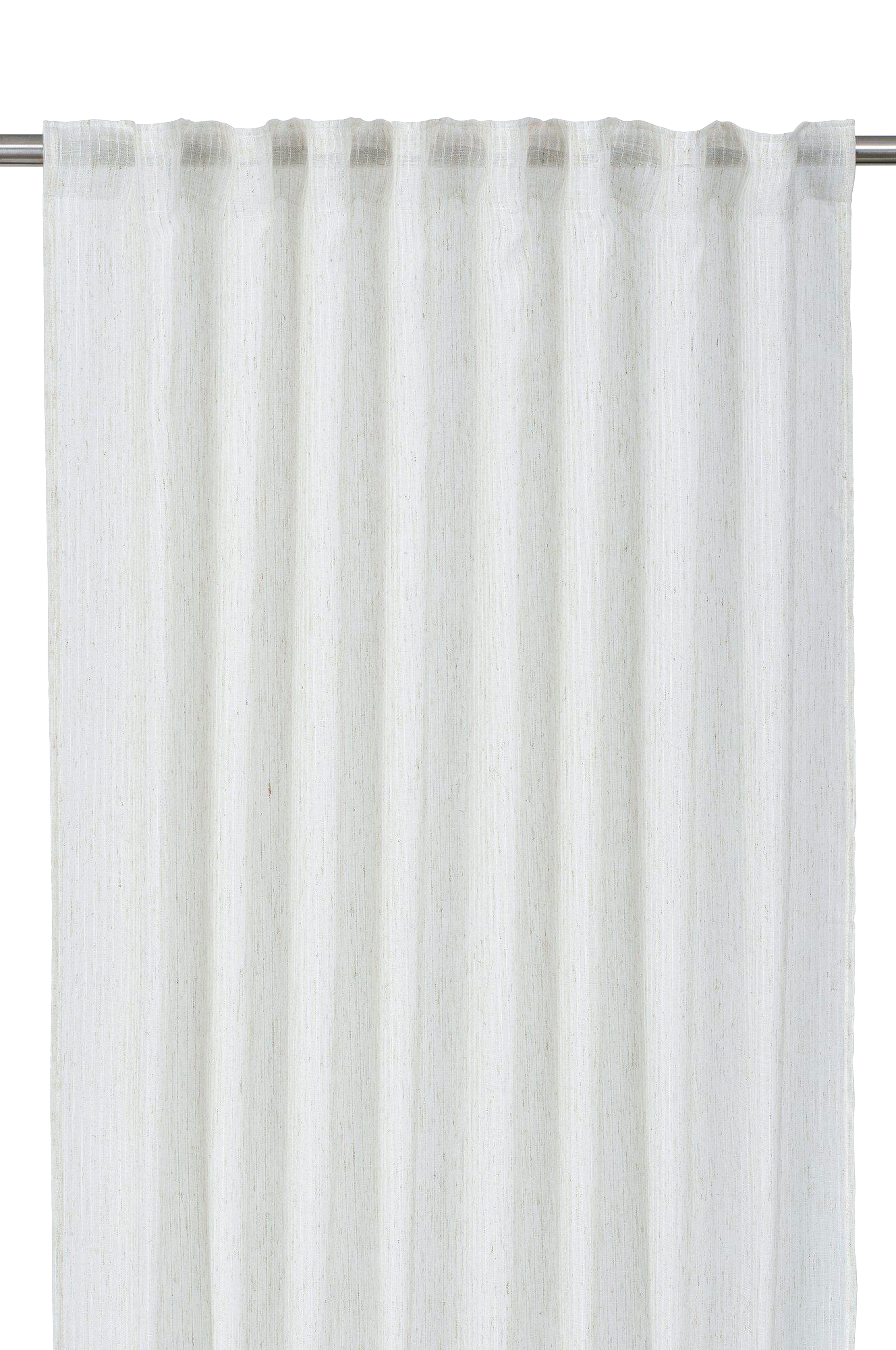 2-pack multibandslängder i ett skirt tyg som silar ljuset. Tyget har en invävd smal rand, det ger en vacker struktur och färgskiftning som gör det levande. Har multiband i ovankant, fållade långsidor och overlocksöm i nederkant. Använd snabbfållningsband för att få rätt längd på gardinen. Multibandet är en flexibel lösning som gör att gardinen kan hängas upp antingen med fingerkrokar, räkor eller direkt på en stång beroende på vilken typ av veck och vilket fall man vill ha på gardinen. Mått 140x280cm. Produkten är certifierad enligt standard 100 by oeko-tex®. Certifieringen garanterar att produkten är testad och fri från ämnen som kan vara skadliga för hälsan och miljön. 100% polyester.