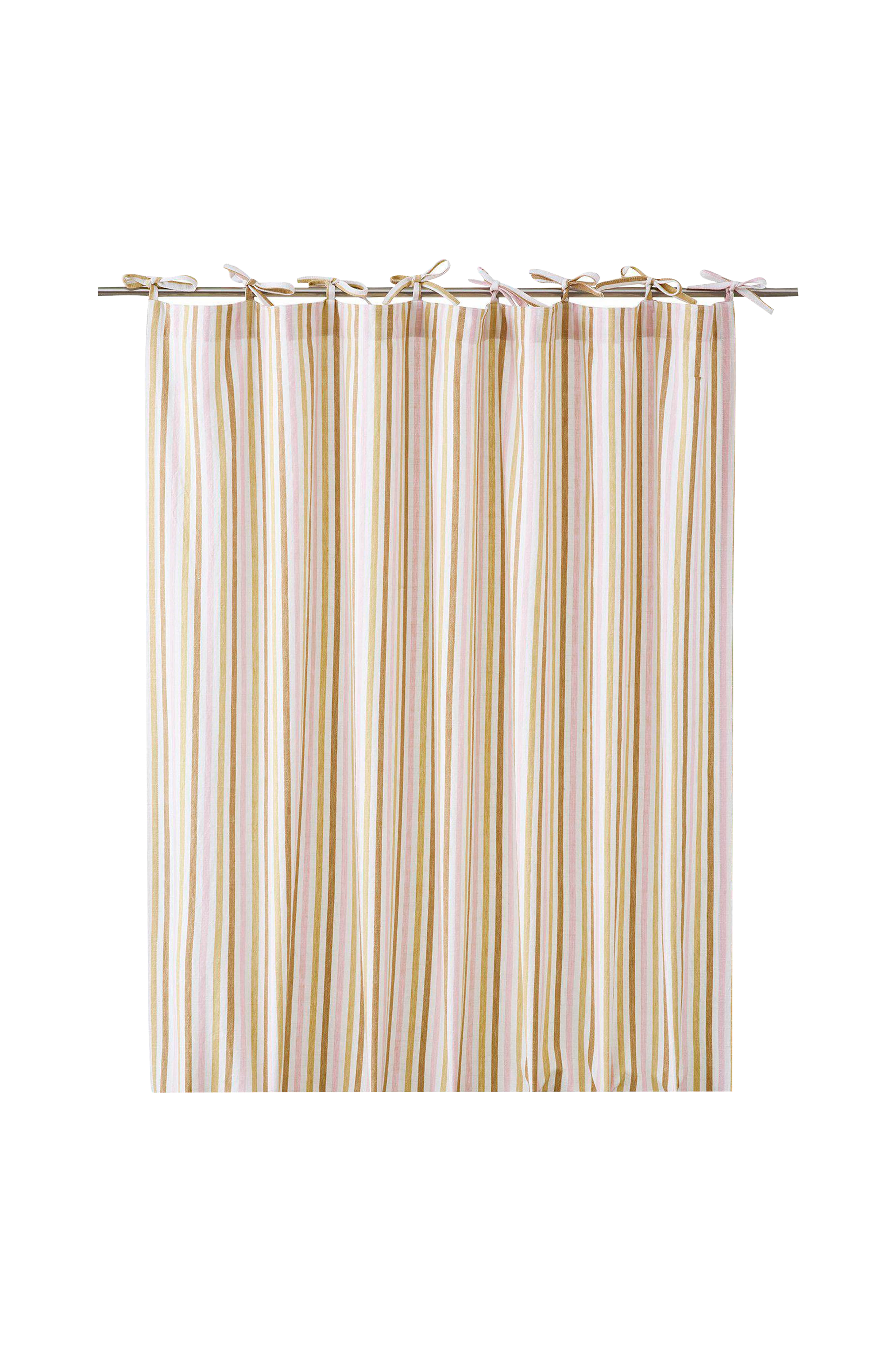 2-pack knytbandslängder i tvättad bomull med garnfärgade ränder vilket gör att gardinen är lika fin på baksidan som framsida. Gardinen knytband i ovankant, fållade långsidor och overlocksöm i nederkant. Använd snabbfållningsband för att få rätt längd på gardinen.