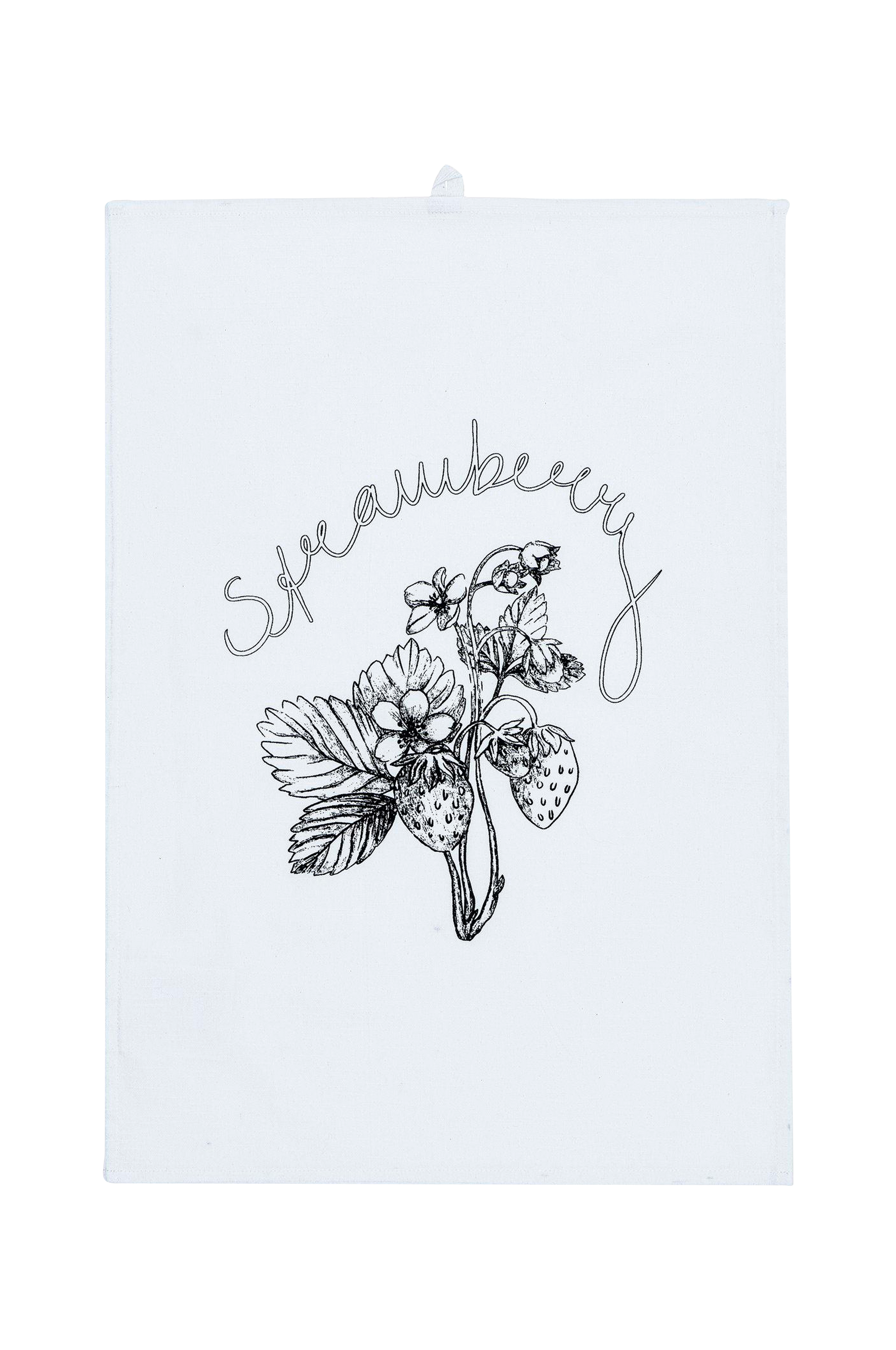 Kökshandduk med tryckt mönster. Storlek 47x70cm och en färgmatchad hank.