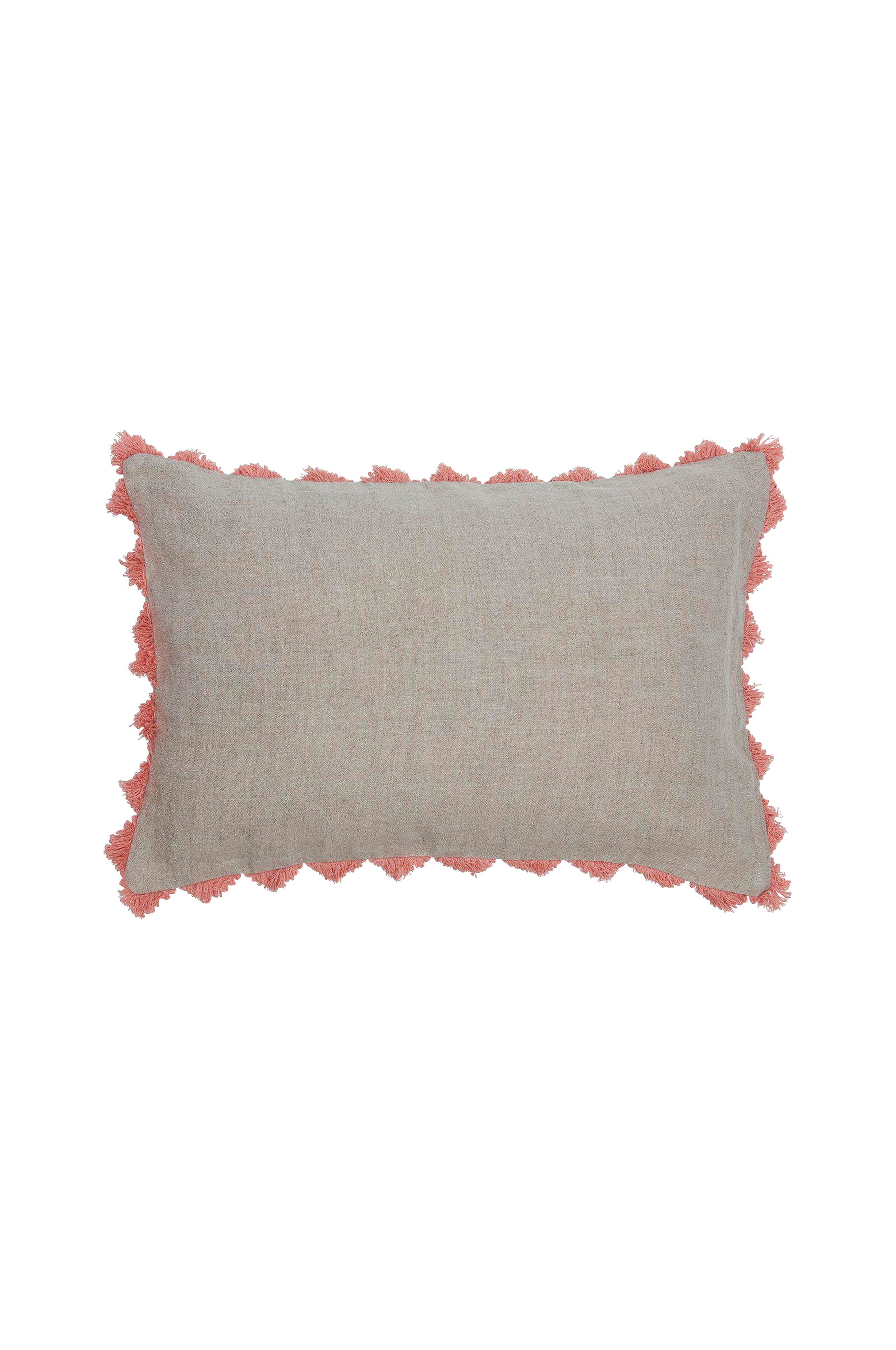 Kuddfodral i lätt tumlat linne med dekorativa fransar i avvikande färg. Linet är av hög kvalitet och har odlats i västra delarna av europa. Dold dragkedja på baksidan. Mått 40x60cm. Innerkudde köpes separat. Produkten är certifierad enligt standard 100 by oeko-tex®. Certifieringen garanterar att produkten är testad och fri från ämnen som kan vara skadliga för hälsan och miljön. 100% linne.