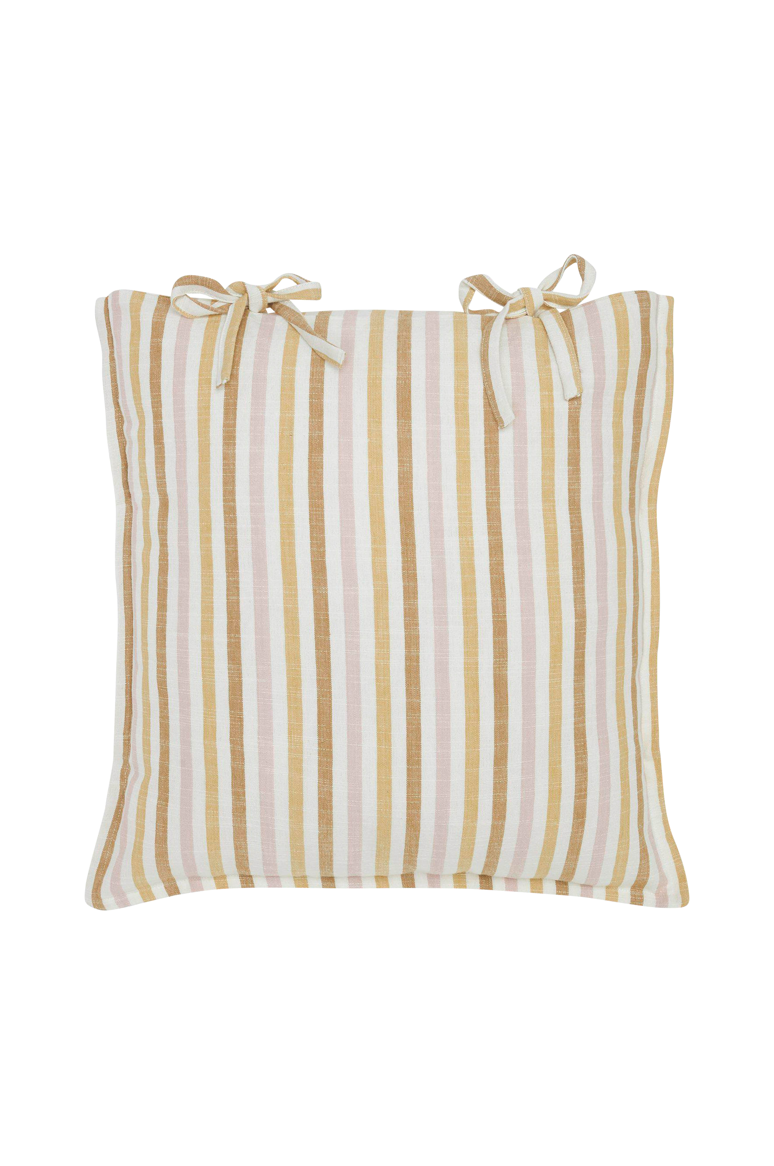 Kuddfodral i tvättad bomull med garnfärgade ränder, med knytband i nederkant. Innerkudde köpes separat. För ett välfyllt utseende köp gärna en innerkudde som är något större. Produkten är certifierad enligt STANDARD 100 by OEKO-TEX®. Certifieringen garanterar att produkten är testad och fri från ämnen som kan vara skadliga för hälsan och miljön.100% Bomull.