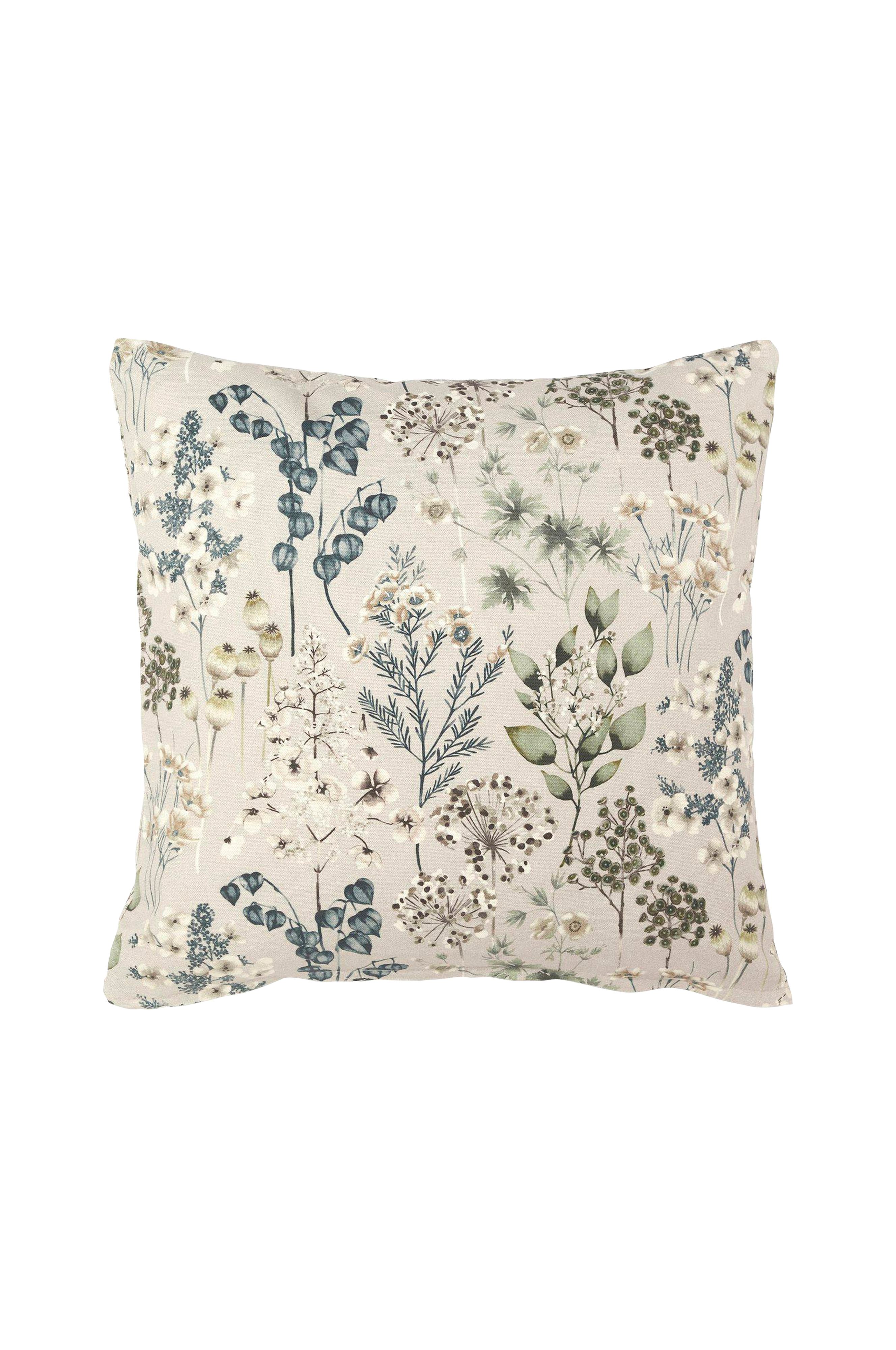 Kuddfodral med tryck mönster på bomullstyg och med matchande piping i sammet. Kuddfodralet har dragkedja i nederkant. Innerkudde köpes separat. 100% Bomull.