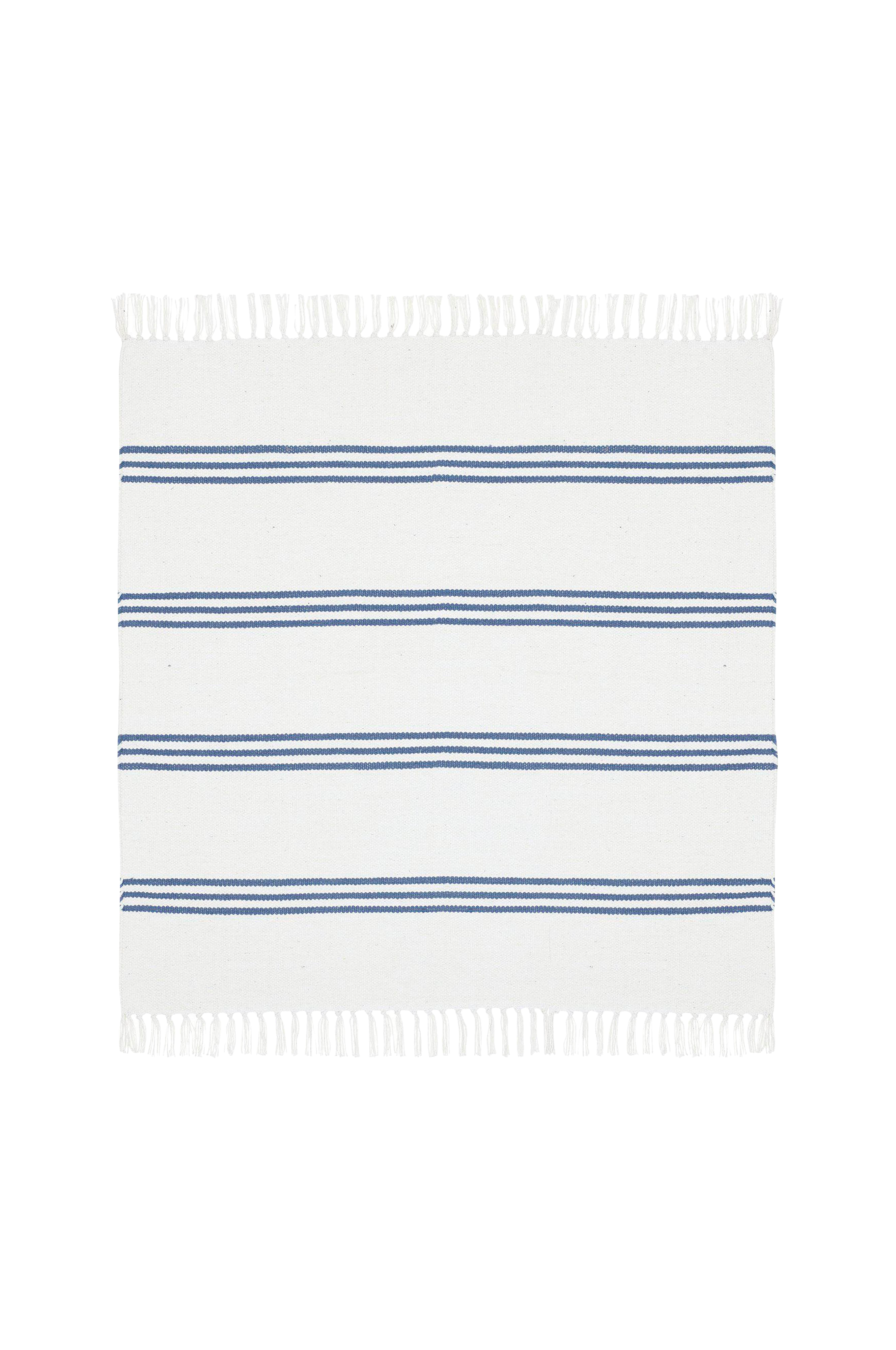 Vävd matta i tunn bomullskvalitet med randigt mönster. Vi rekommenderar halkskydd för att mattan ska ligga bättre mot golvet och för att minska halkrisken.