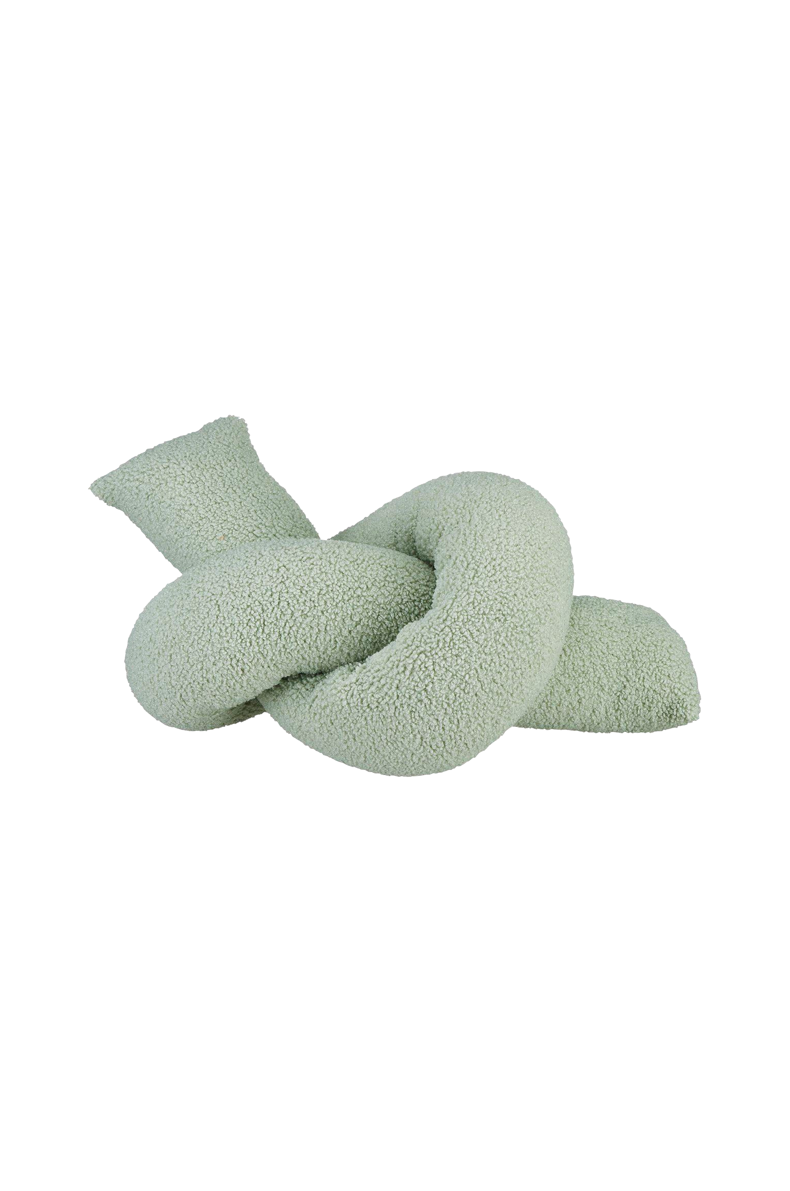 Knutformad kudde med mjukt flossat tyg. Kudden som är ca 45x30x20cm kan varieras i oändlighet. Formen gör den lättplacerad och den har många användningsområden. Produkten är certifierad enligt standard 100 by oeko-tex®. Certifieringen garanterar att produkten är testad och fri från ämnen som kan vara skadliga för hälsan och miljön. 100% polyester.