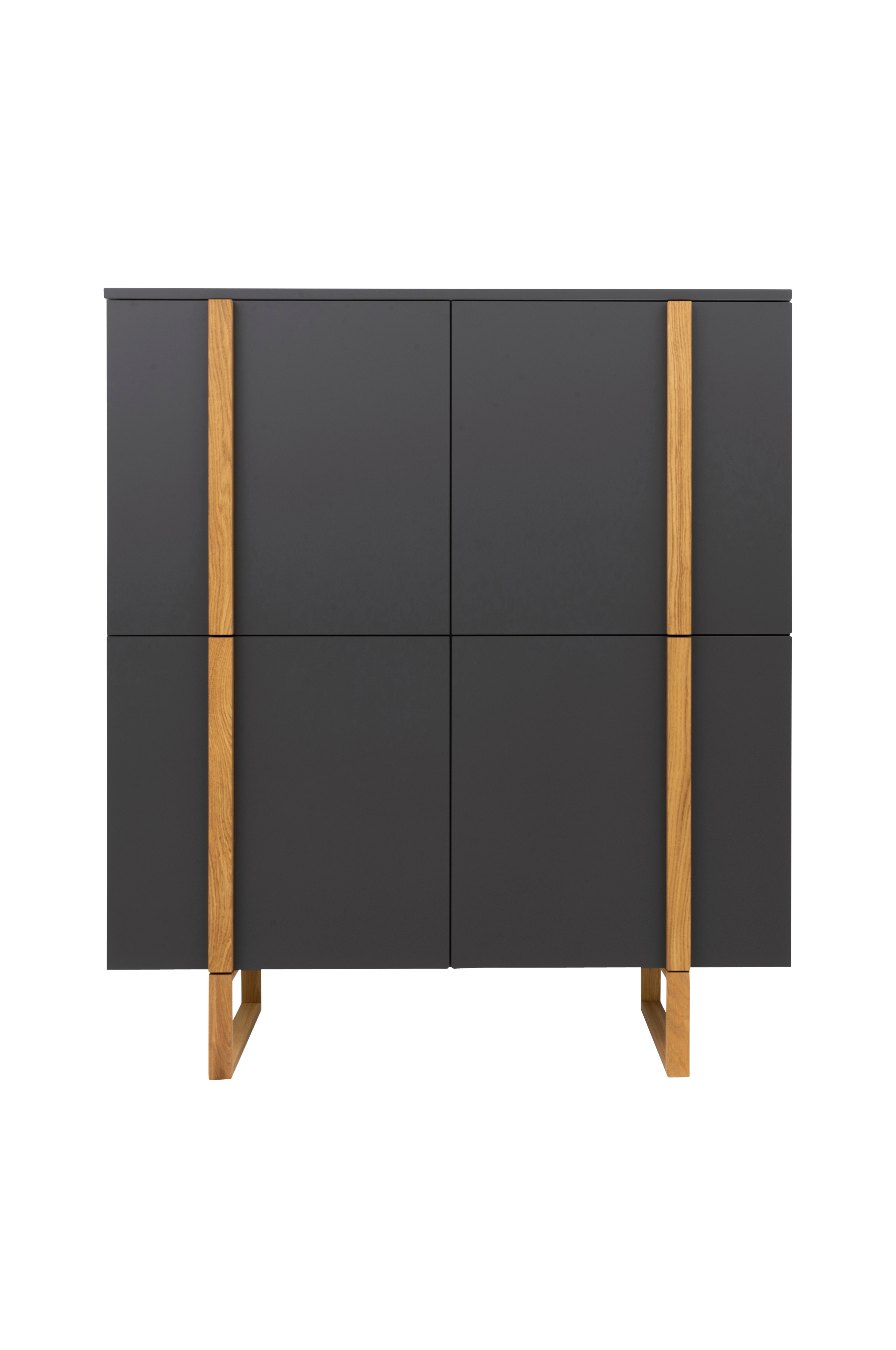 Svensk Producerat. Lackad Mdf & Spånskiva. Handtag och Ben i massivt oljad ek. Detta högskåp har 4 dörrar med softclose funktion. Bakom varje dörr finns 1 Justerbar hylla.