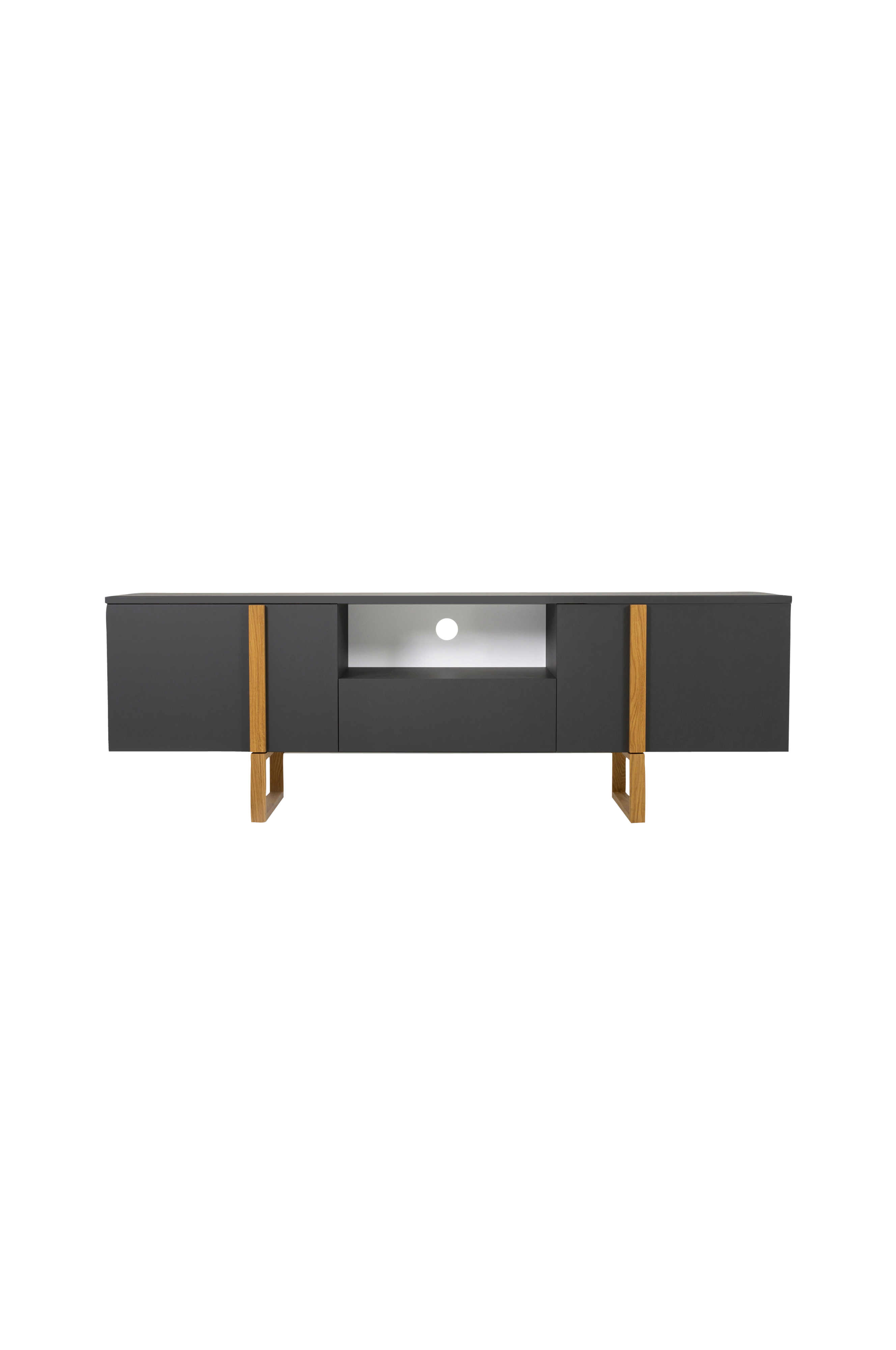 Svensk Producerad. Lackad mdf & Spånskiva. Handtag och ben i massiv oljad ek. Detta Sideboard är försedd men 1 Låda med push funktion, lådsarg i ek melamin för snygg effekt när man öppnar lådan. Öppet fack i mitten med kabelgenomsläpp. Bakom dörrarna som har softclosefunktion finns ett stort utrymme men justerbar hylla.