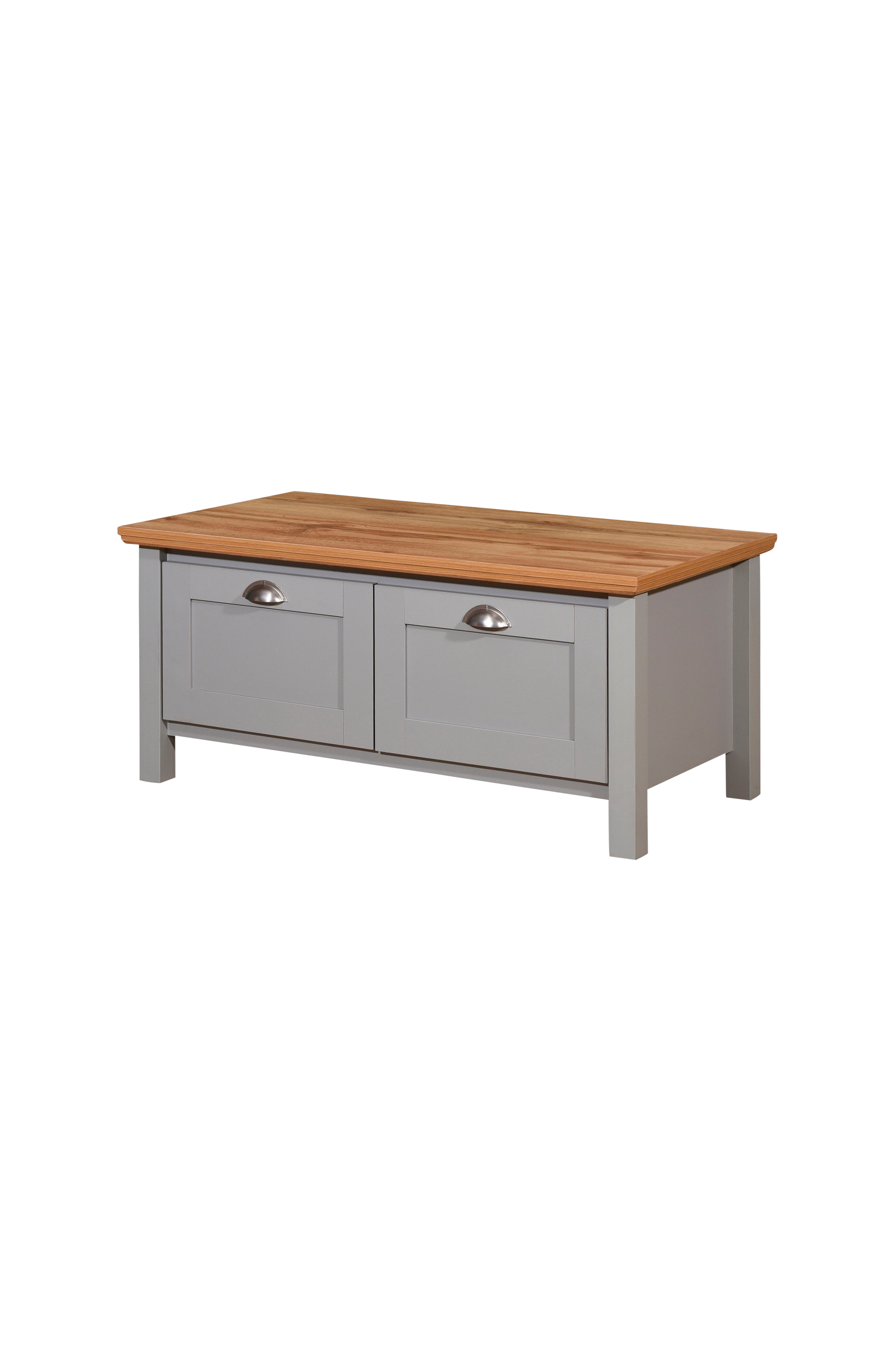 Denna bänk kommer omonterad men det medföljer en bra monterings beskrivning. Inne i skåpet är det mycket plats för div saker. Dörrarnas framsida har snygga handtag i köpmansdisk stil och materialet är MDF skivor som är lackerade.