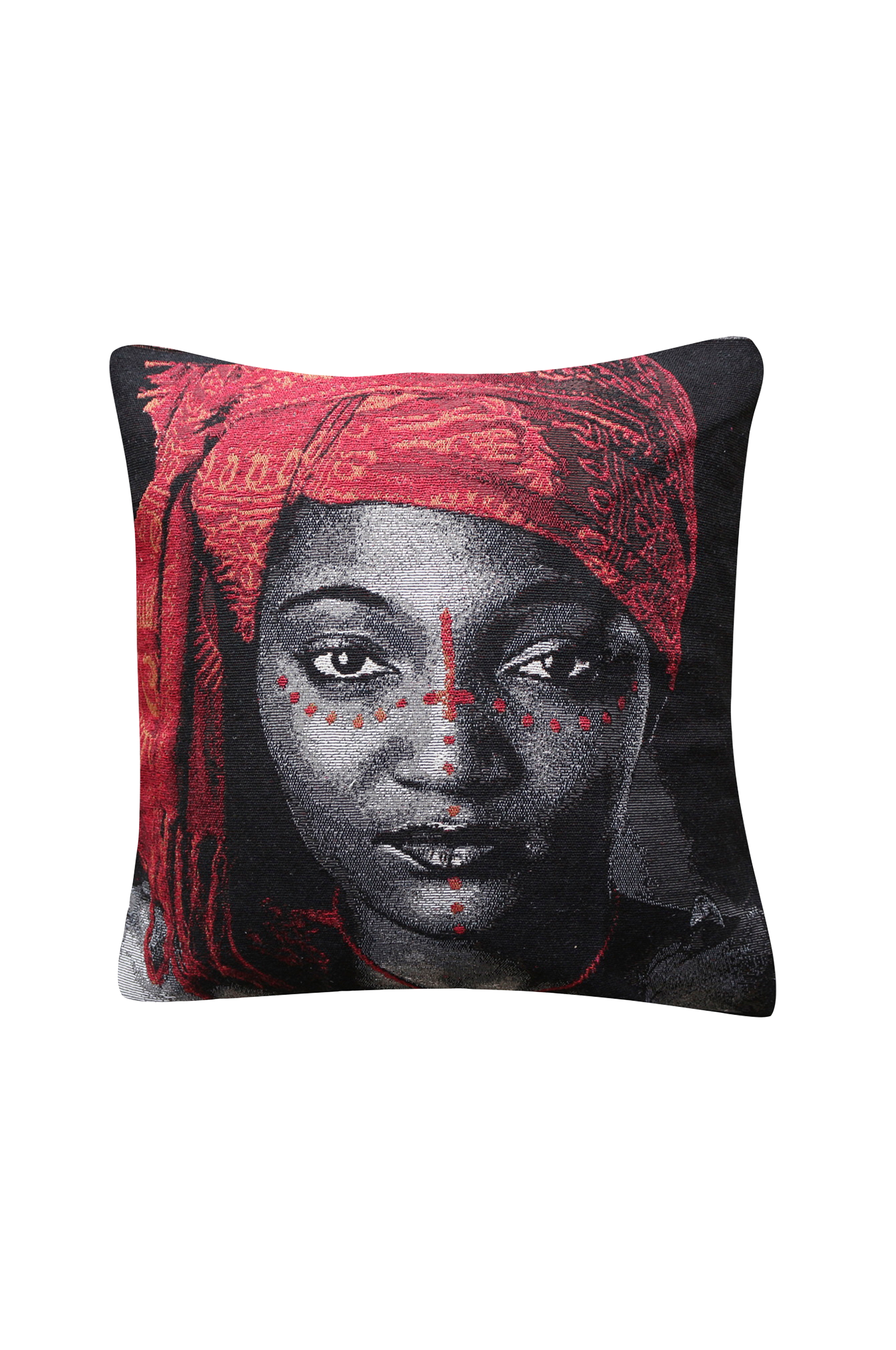 Här är något för dig som vill ha en lite annorlunda kudde, med ett svalt kvinnohuvud, det finns också några fina färgnyanser i den.