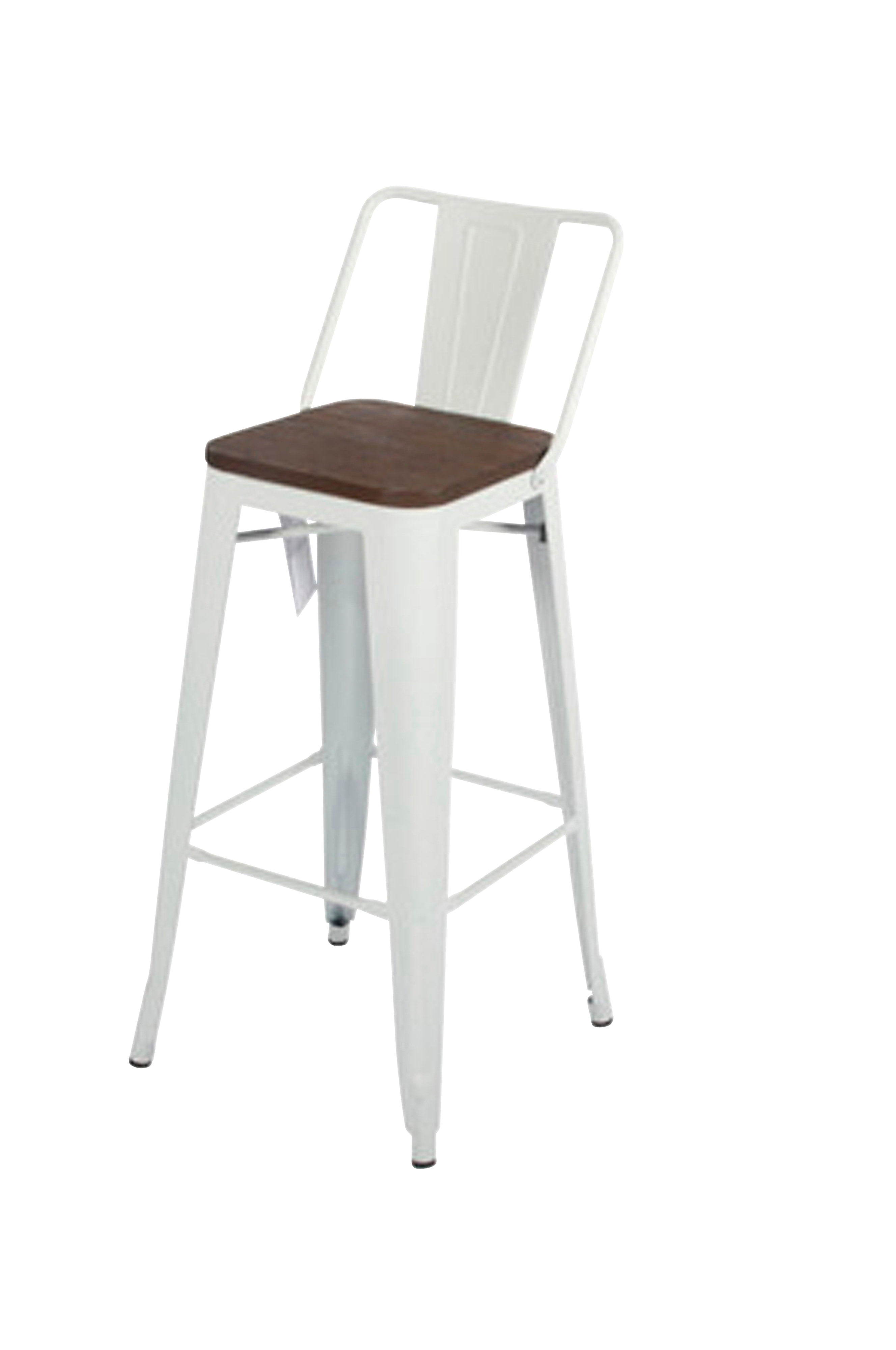 Denna franskinspirerade barstol i plåt med träsits passar på de flesta ställen, med det lilla dekorativa ryggstödet som en extra finess. Designen är modern och samtida vilket gör den mycket populär bland de flesta.