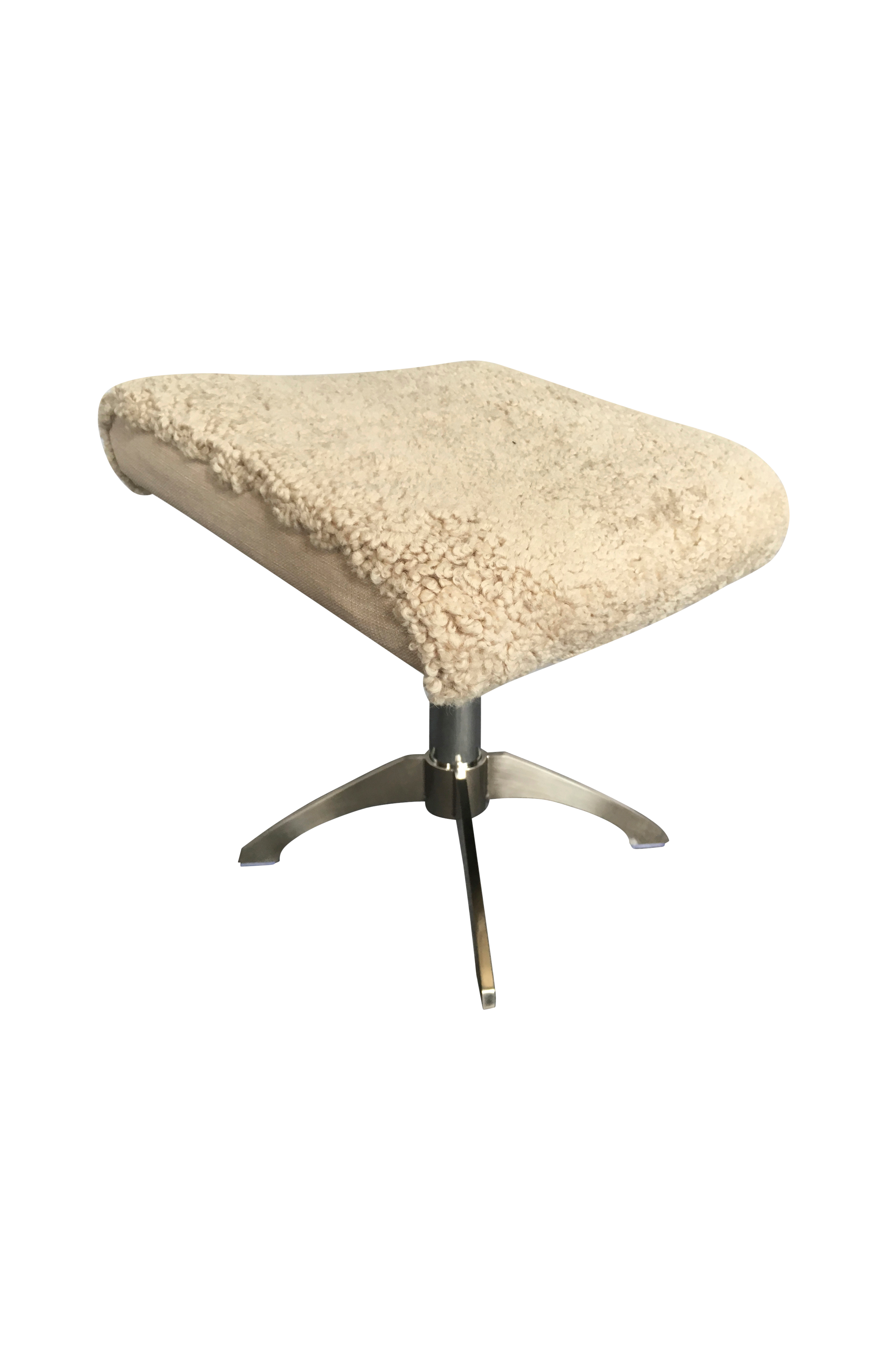 Denna fotpall tillhör fåtöljen nr 560. Med topp fårskinns läder från Australien/ Nya Zealand, sidorna på pallen har matchande tyg, till detta en fot med 4 ben i en riktigt snygg kromad design