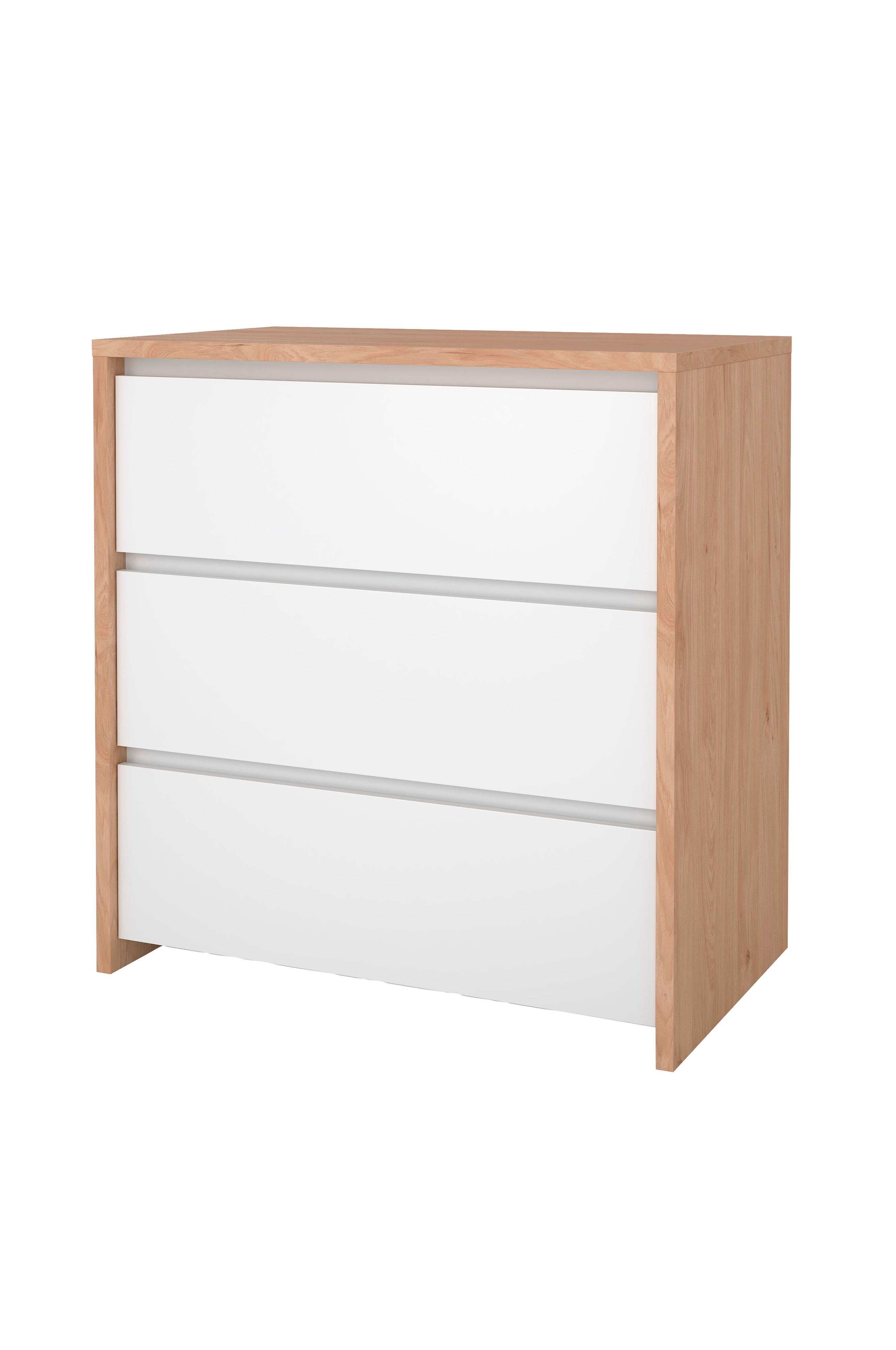 next -byrån kombinerar skandinavisk elegans med modern funktionalitet. Med en elegant färgkombination och tre rymliga lådor erbjuder den gott om förvaringsutrymme samtidigt som den tillför elegans till alla rum. Perfekt för sovrum, vardagsrum eller hallar.