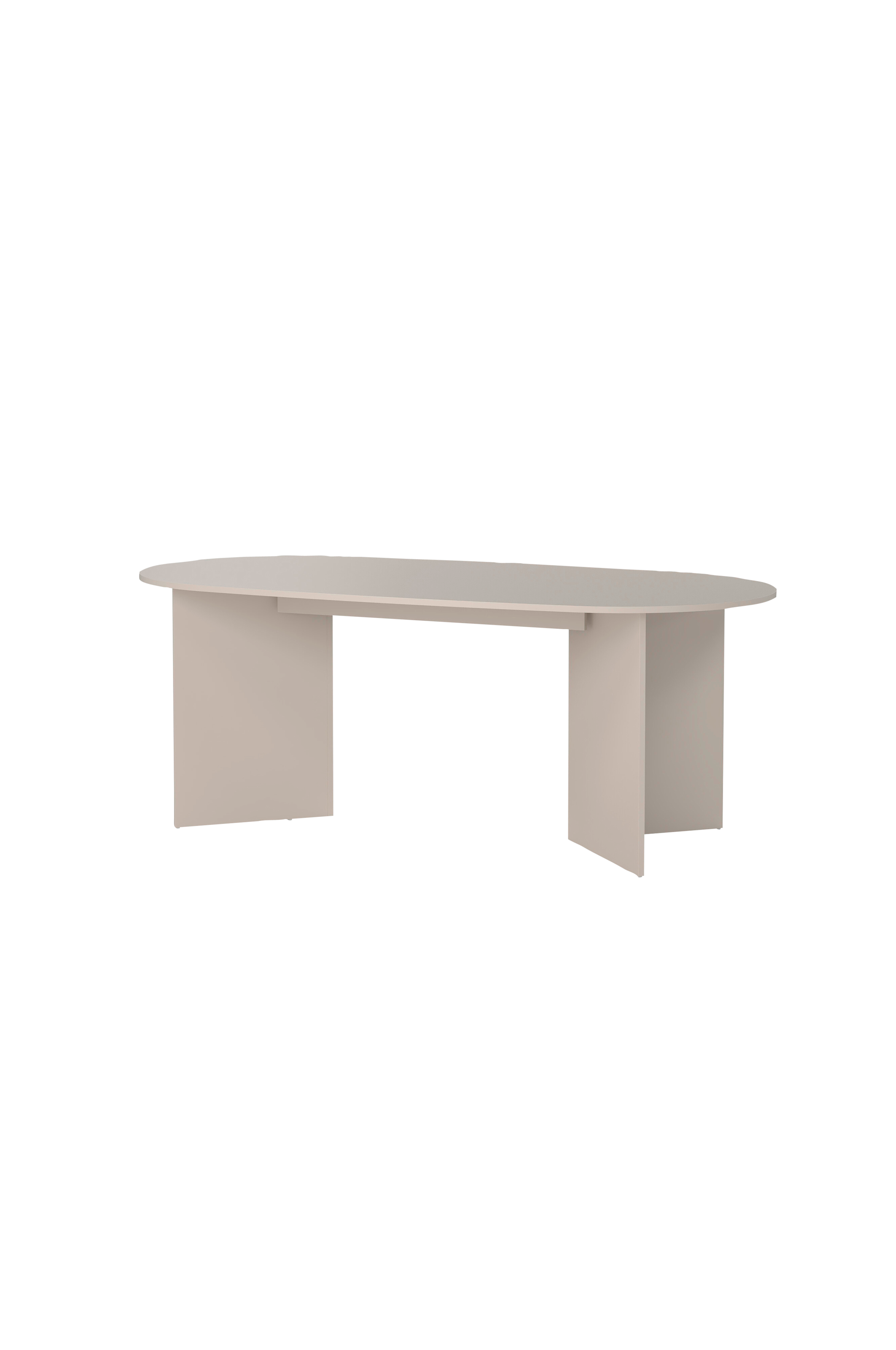 Detta moderna matbord har en rymlig oval bordsskiva som stöds av robusta panelben och en central balk, vilket kombinerar stabilitet med elegans. Bordet är perfekt för familjemåltider eller andra sammankomster och förhöjer interiörer med rena linjer och tidlös design.