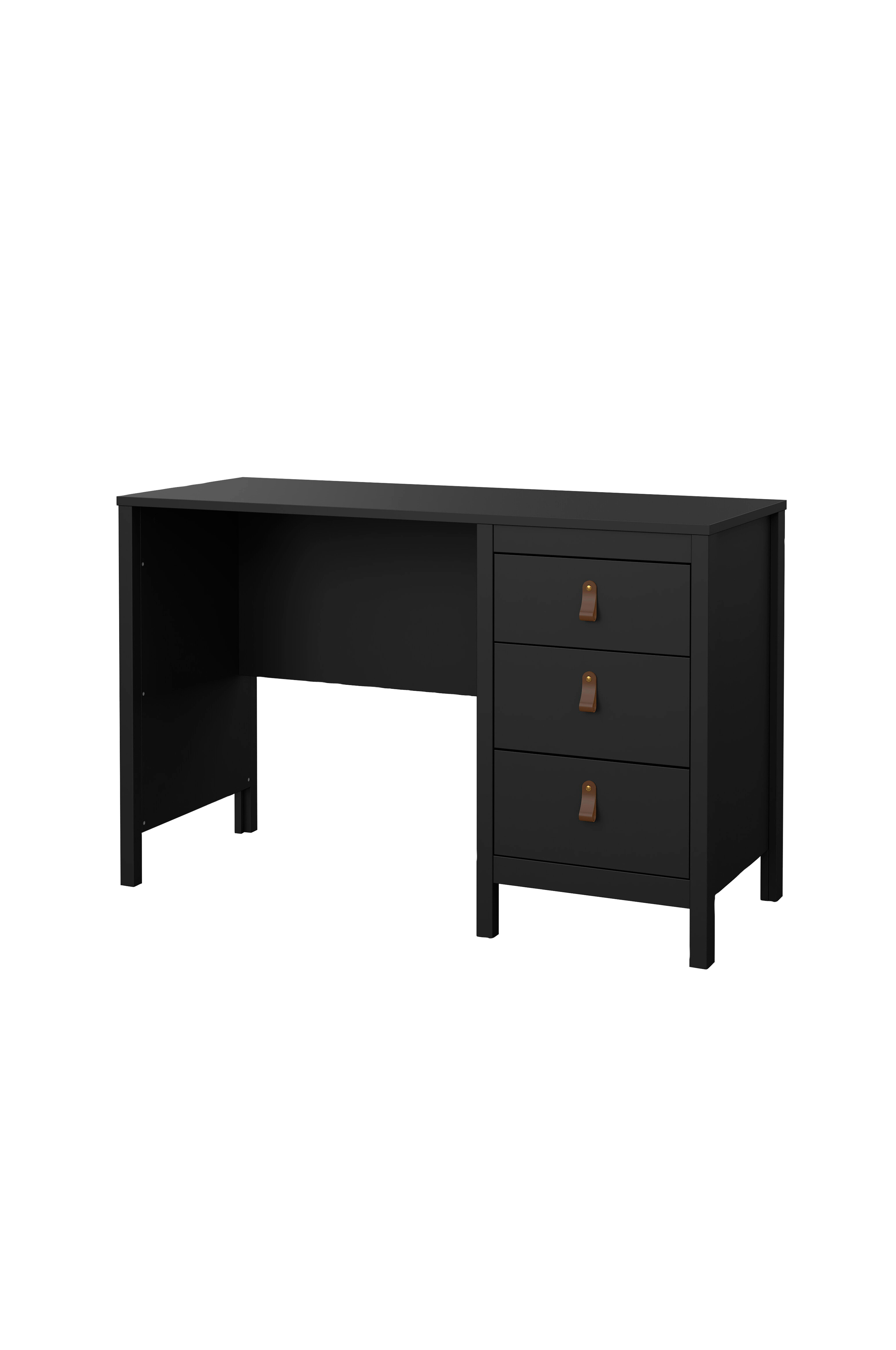 Med sin eleganta och minimalistiska design smälter madridskrivbordet sömlöst in i alla hem. Det har tre lådor som erbjuder gott om förvaringsutrymme för dina kontorsprodukter. Håll din arbetsyta organiserad och njut av kontorsskrivbordets enkelhet. Två handtag, ett läderhandtag och en knopp, ingår för att justera utseendet.
