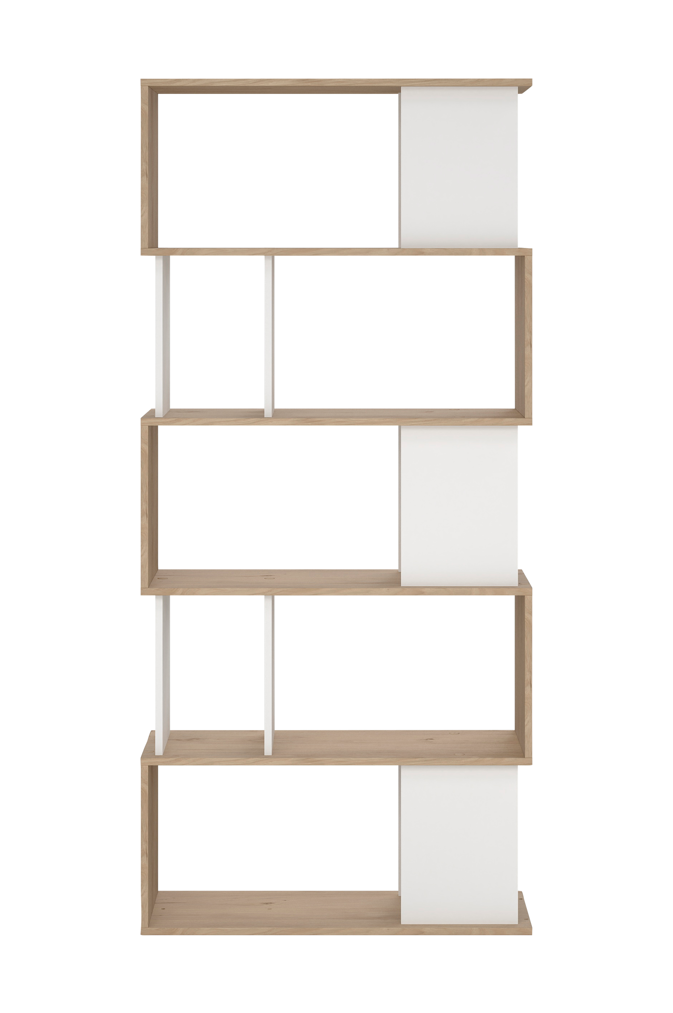 Bokhyllan maze har en modern, geometrisk design med en öppen struktur och asymmetriska hyllor. Den erbjuder både stil och funktionalitet och ger gott om utrymme för böcker, inredning och andra viktiga saker. Dess mångsidiga design gör att den passar perfekt i alla rum och ger en modern touch till ditt utrymme.